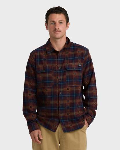 Offshore Jacquard Long Sleeve Flannel Shirt - Wine