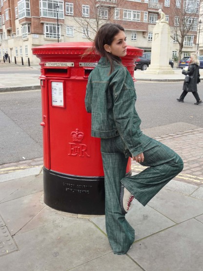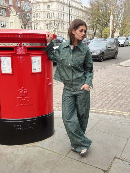 The fit is slightly boxy, offering a relaxed yet polished look that’s easy to style over dresses, T-shirts, or knitwear. A versatile outerwear piece you can wear season after season. Style it on its own or with the matching jeans for a coordinated look.
