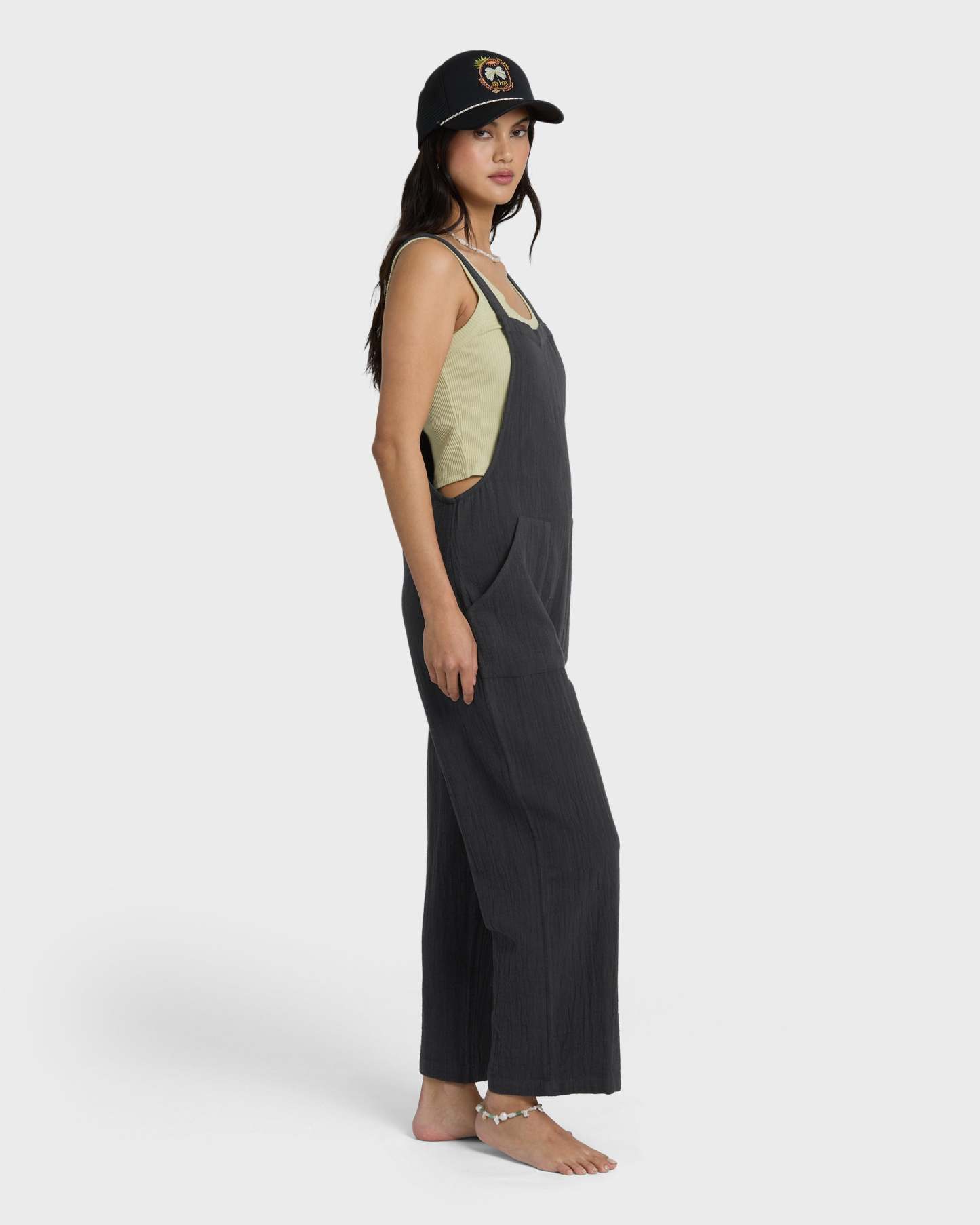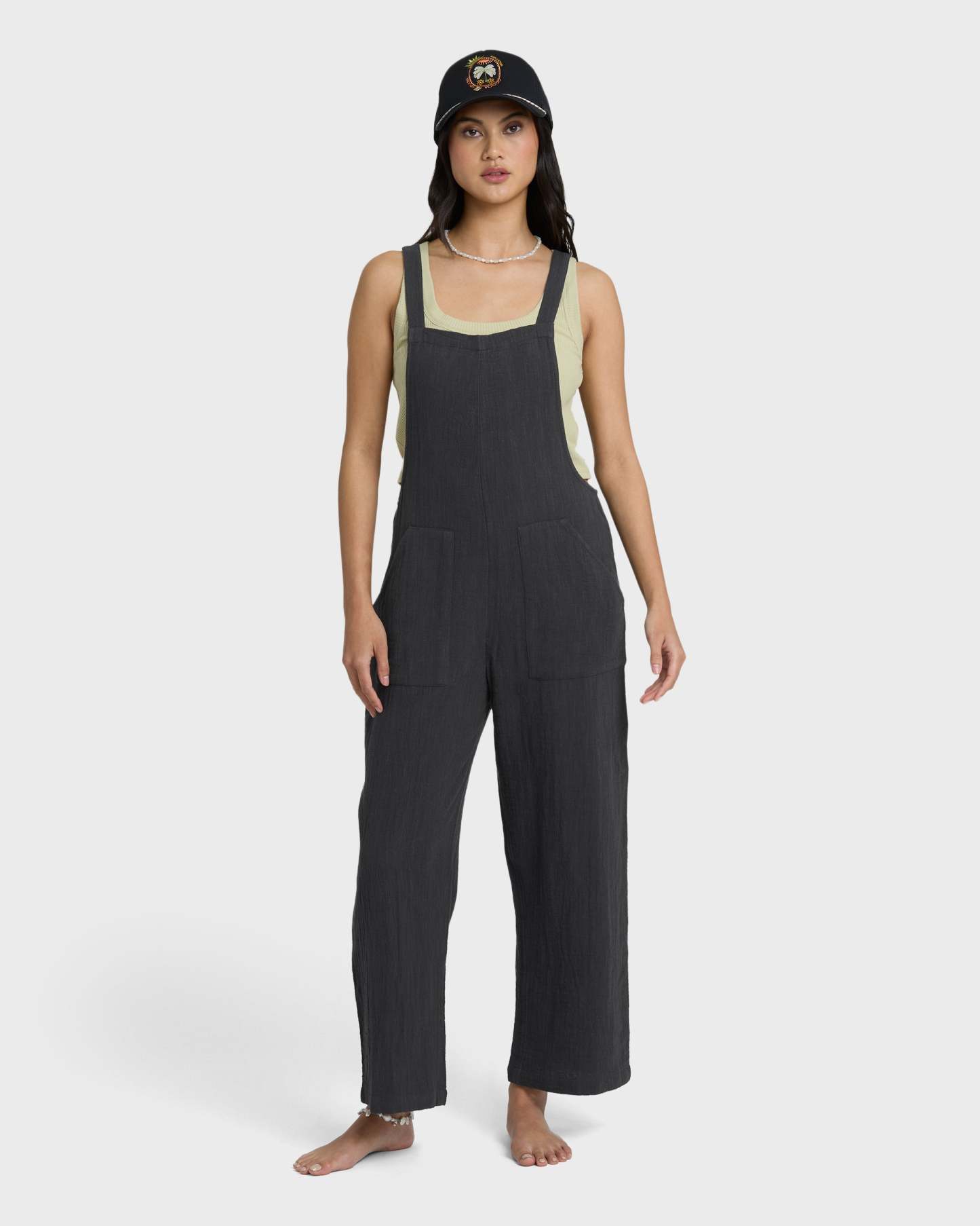 Pacific Time is that pair you throw on without thinking and somehow look put together. Cut in an easy regular fit from airy cotton double slub gauze, these woven overalls feel light and soft, like they've already lived a few long weekends. The adjustable back straps use internal buttons so you can tweak the rise, layer over tees or bikinis, or wear them relaxed and low. Front patch pockets stash your keys, a shell or two, whatever the day brings. Part of the Billabong Essentials collection, they’re your everyday, beach-to-town one-and-done. Featured here in the Black Sands colorway.