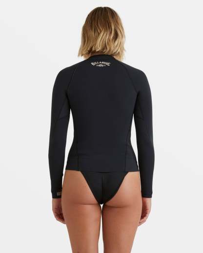 Carve your own path in this stretchy, conscious surf jacket made from a recyclable natural rubber blend. Front zip silhouette lets you flow with ease. Featured here in the Black colorway.