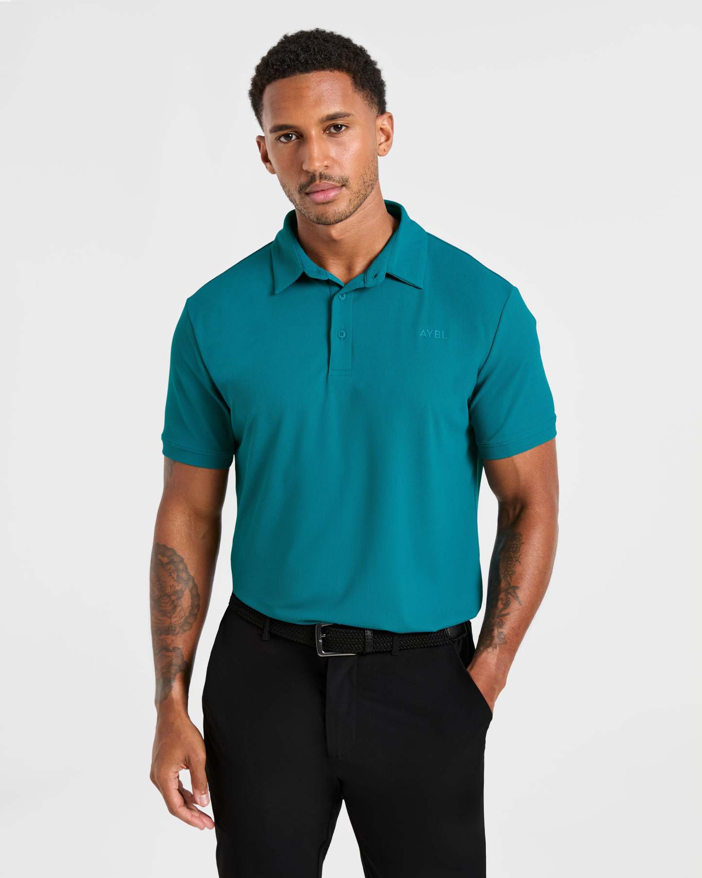 Our Precision Polo is the ultimate blend of style and functionality for the modern golfer. The soft, lightweight textured fabric with added stretch keeps you cool and moves effortlessly with every swing. It features a classic polo fit with short sleeves and a versatile length that can be tucked in or out. Finished with a classic collar and a button placket opening with AYBL branded buttons.