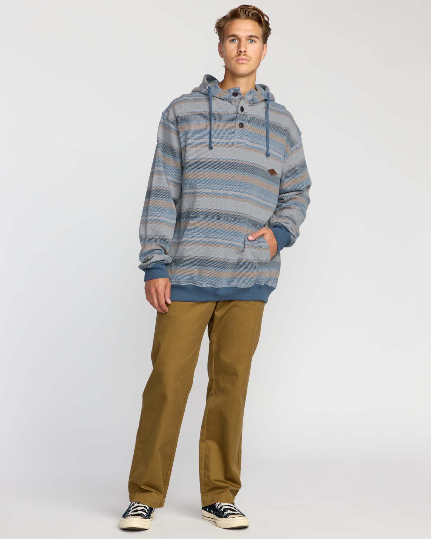 100% cotton ruggedness meets zero-fuss comfort. This pullover sweatshirt features a mid-weight fleece body, 3-button collar, and handy front pocket. Classic styling with a premium leather branding hit. Featured here in the Slate Blue colorway.