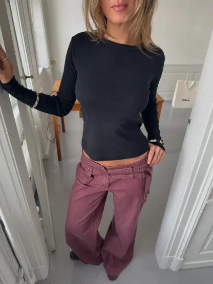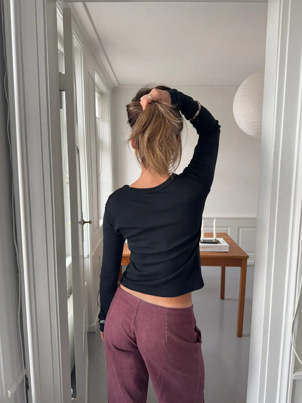 A timeless classic that never goes out of style. This black long-sleeved t-shirt is made from soft, stretchable cotton, offering a super comfortable feel against the skin. The simple and classic fit makes it perfect to wear on its own or layered under a shirt, knit, or jacket.