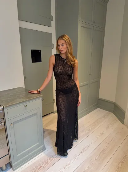 This elegant black maxi dress is a must-have in any wardrobe – simple, flattering, and perfect for both everyday wear and festive occasions. The dress is made from a lightweight, semi-transparent material with a beautiful natural texture that gives it a relaxed yet feminine look.