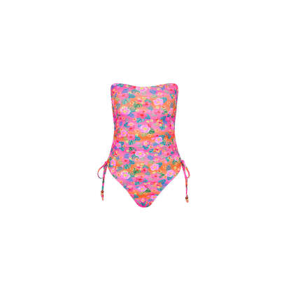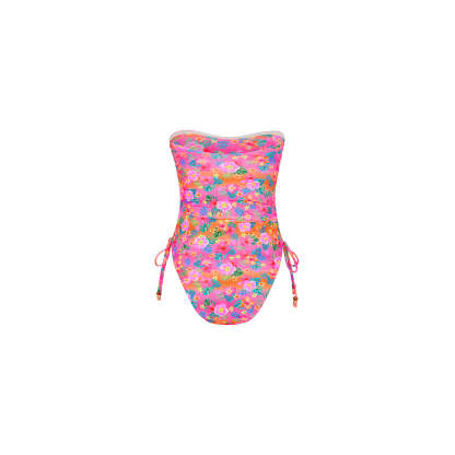 Ruched Bandeau Classic Cut One Piece - Summer Glow