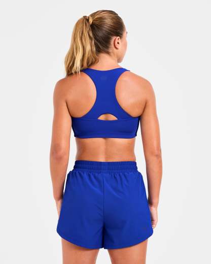 Own the track or treadmill with the Run Sports bra. Crafted with a soft and lightweight fabric, this bra offers a medium level of support and has removable padding, with an internal elastic waistband to provide extra support. The racer back shaping and open back detail give extra ventilation, finished off with tonal piping detailing on the side seams and AYBL logo to the front of chest.