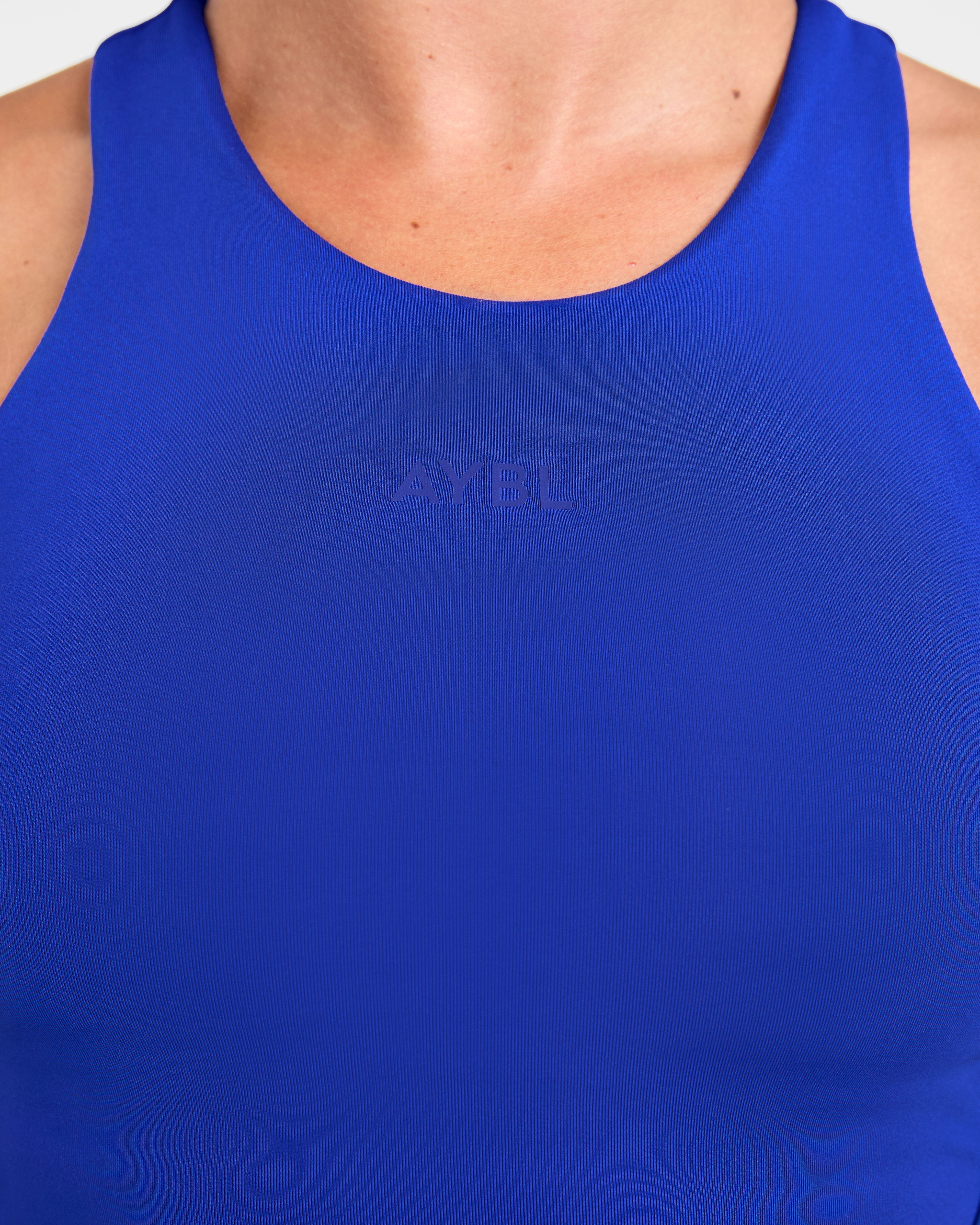 Transform your training with the Run Tank. With a flattering slim body fit and cropped length, it pairs effortlessly with your favourite shorts or leggings. The internal built-in bra provides an extra level of support while the racer back shaping and tonal piping details on the seam bring both performance and style. Finished with the AYBL logo on the front of chest.
