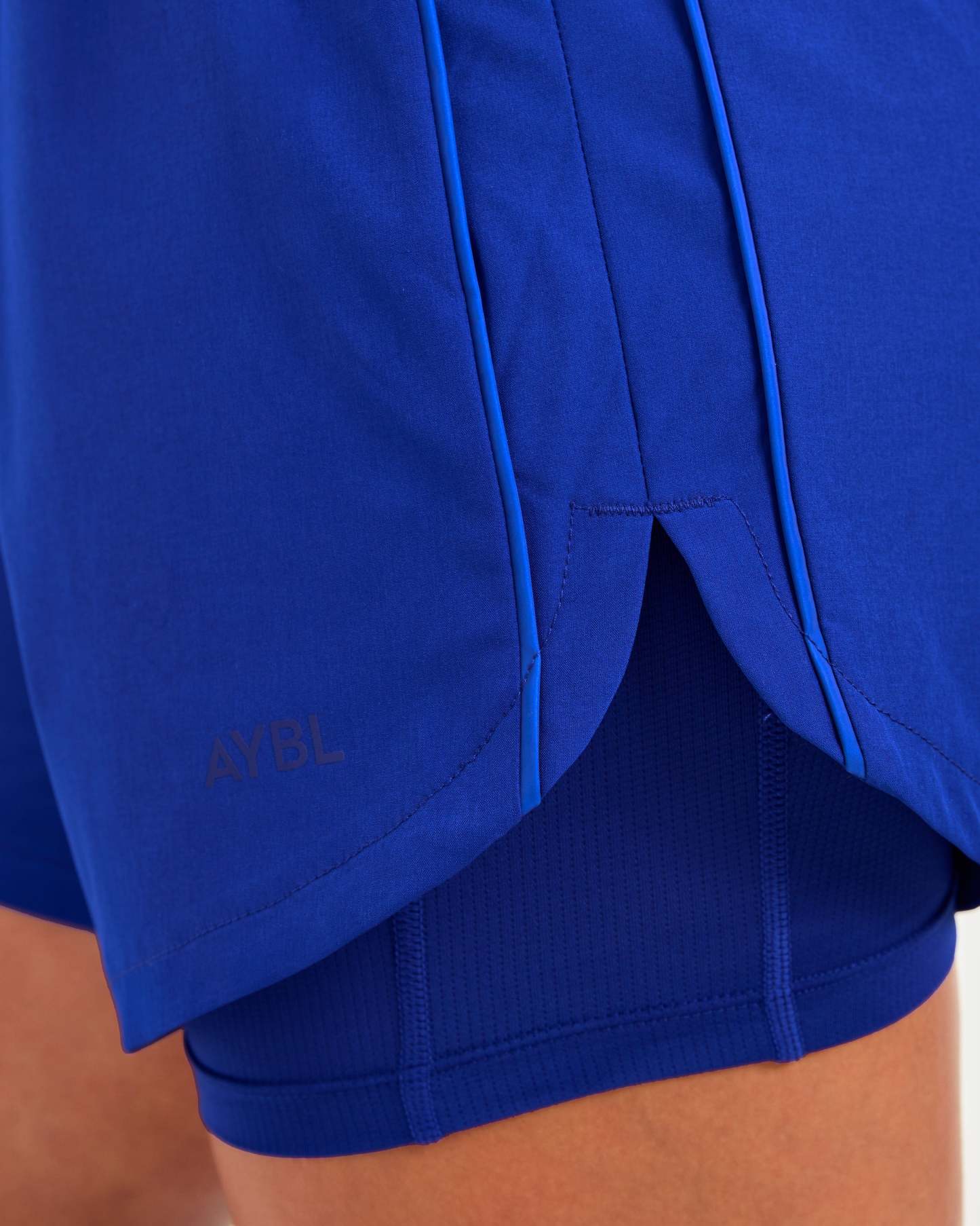 Take on every mile with the Run 2 in 1 shorts. The mesh internal shorts with a slim body fit provide an extra layer of coverage whilst the outer shorts have a looser fit to allow for movement. The mid-high waist, elasticated waistband and drawcords give a comfortable and adjustable fit. Featuring tonal piping detailing down the side seams and zip pockets for extra storage, as well as the AYBL logo on the front leg.