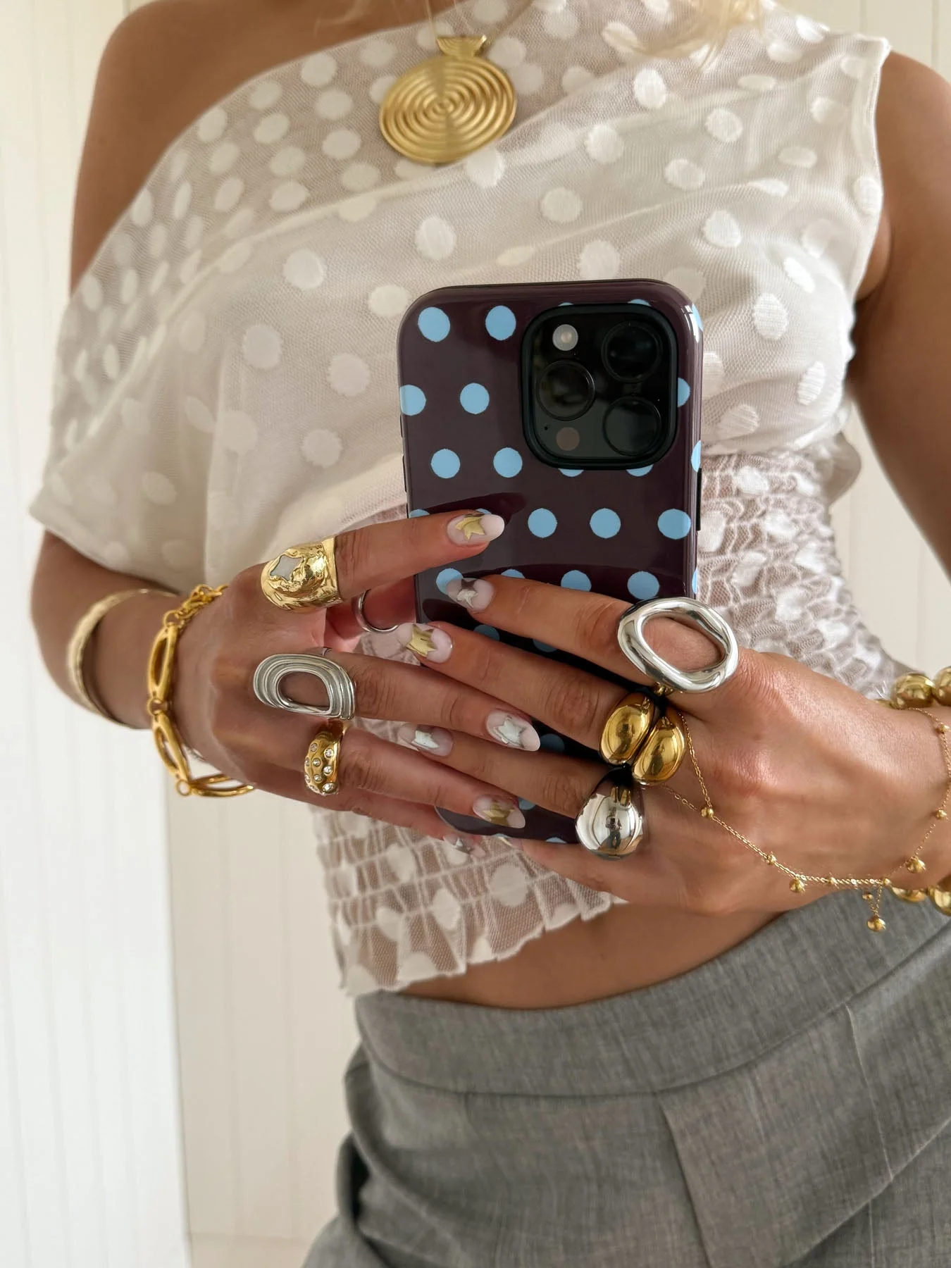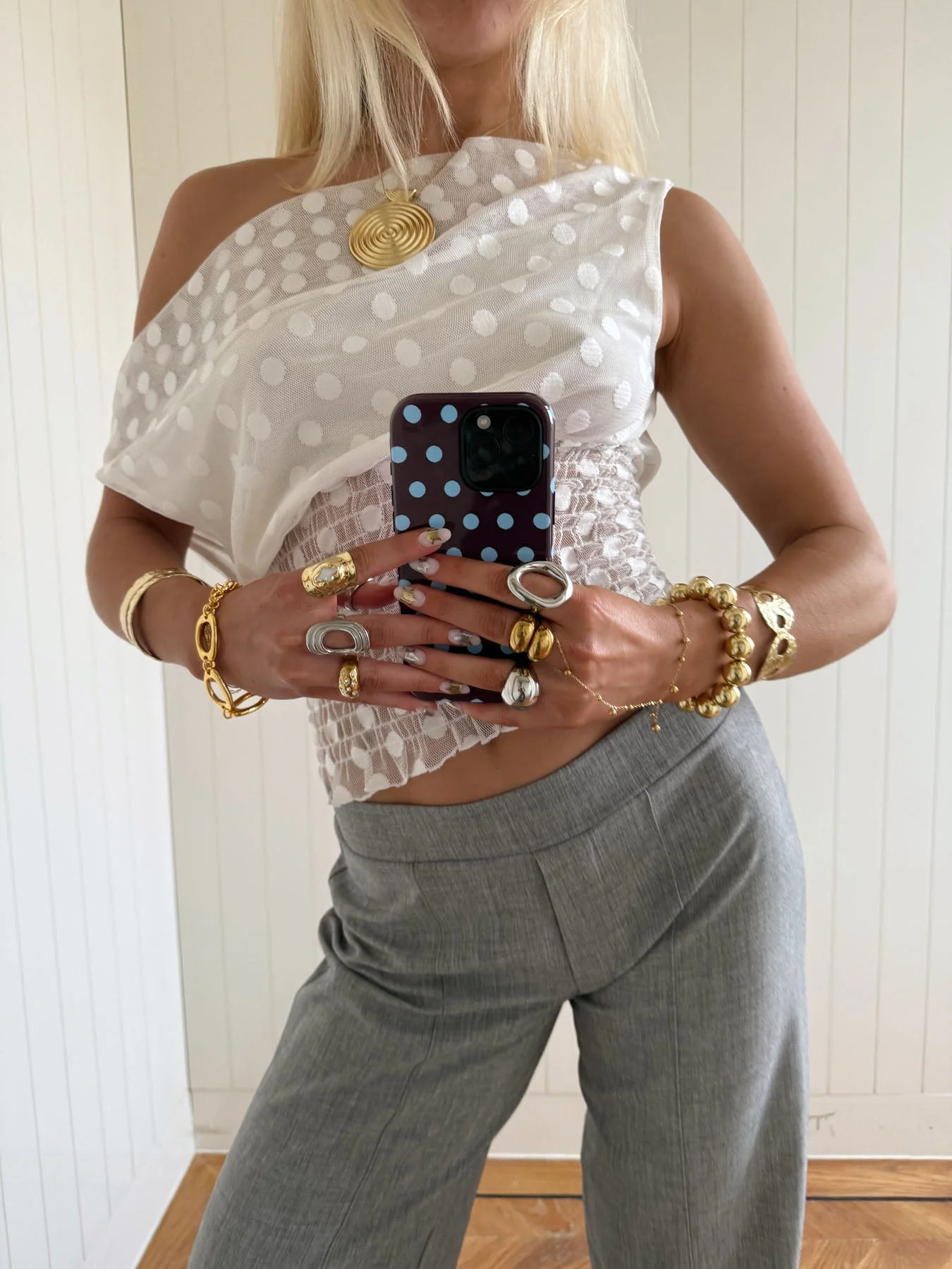 Scandivv mesh top with polka dots – White