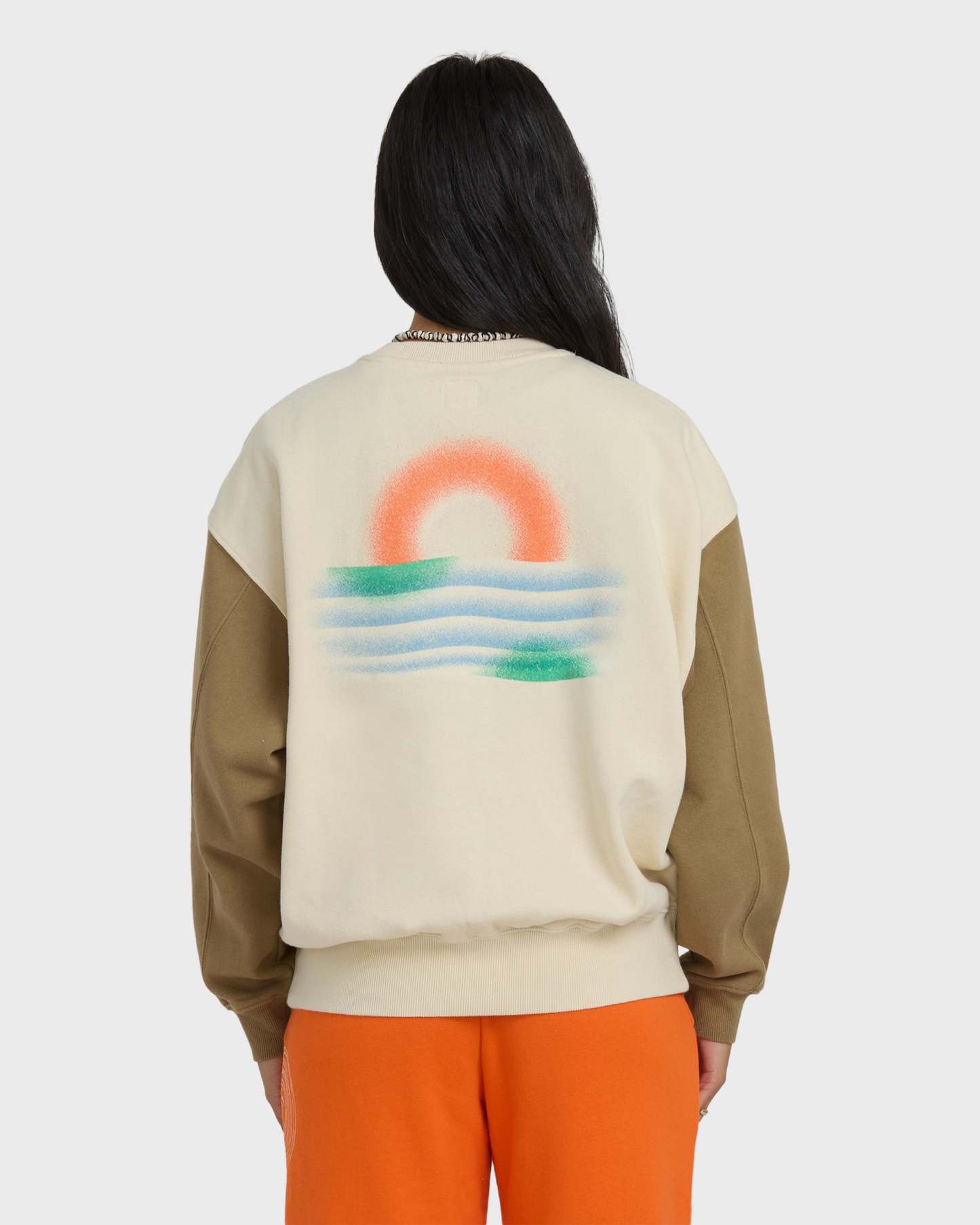 - Pullover crew neck, contrast sleeves, graphic screen print