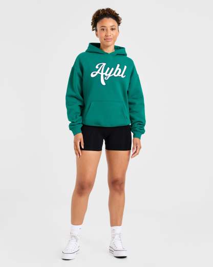 Script Embroidered Oversized Hoodie - Sports Green
