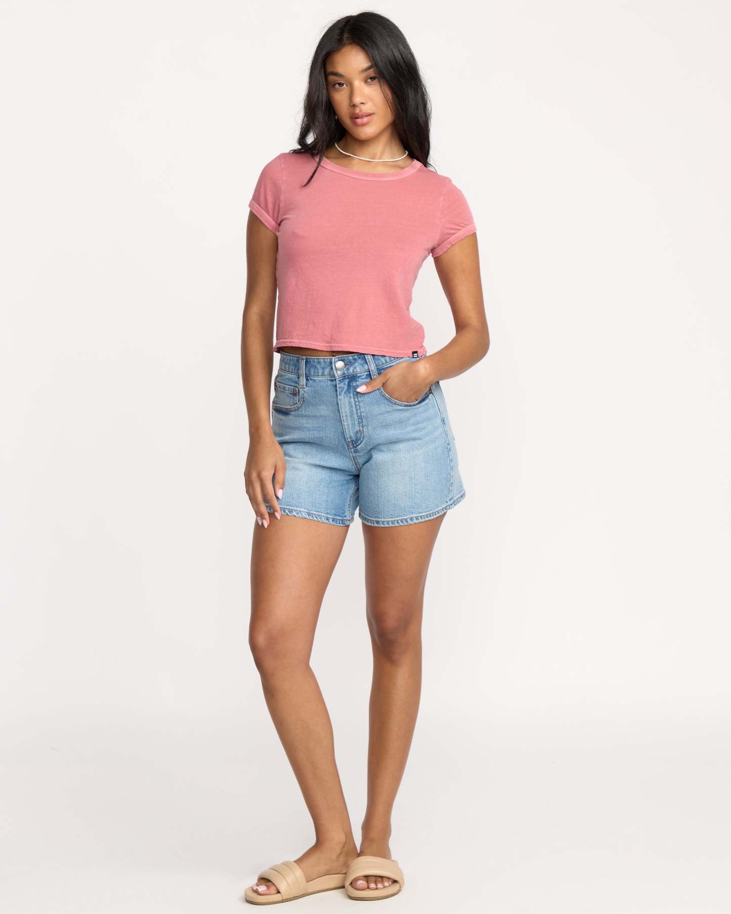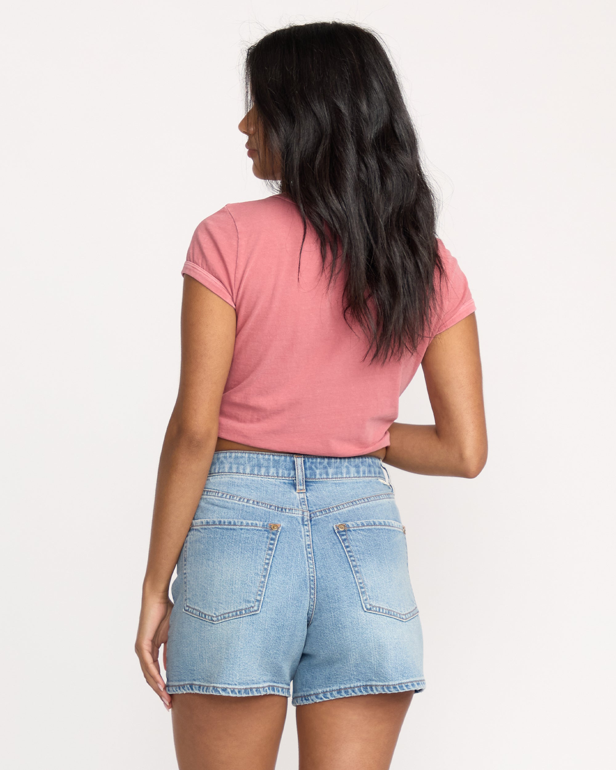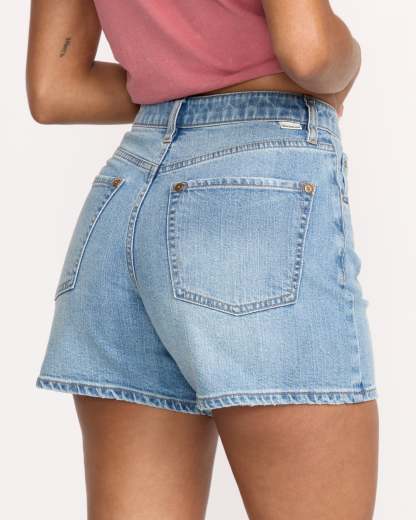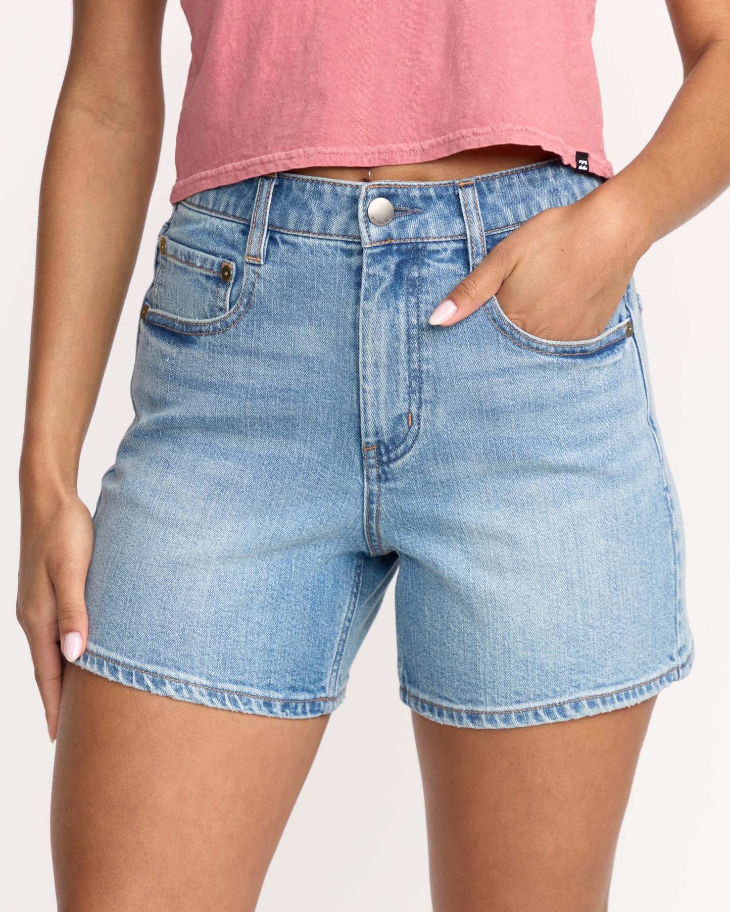 Our high-rise denim shorts bring comfort and style together with a regular fit that flatters every body type. The cotton-blend fabric moves with you, while five pockets keep essentials close at hand. Featured here in the Blue colorway.