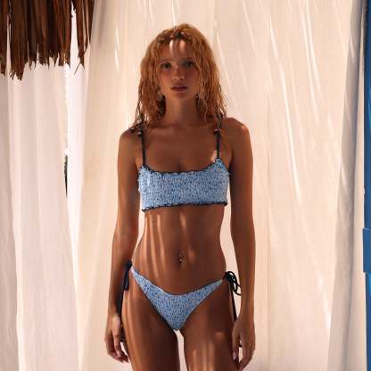 Shirred Crop Tie Bikini Top - Dream Flower