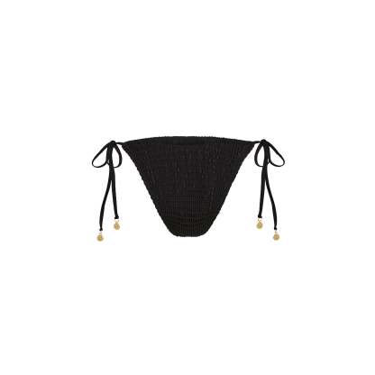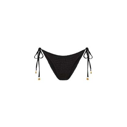 Shirred Dipped Cheeky Tie Bikini Bottom - Twilight Black