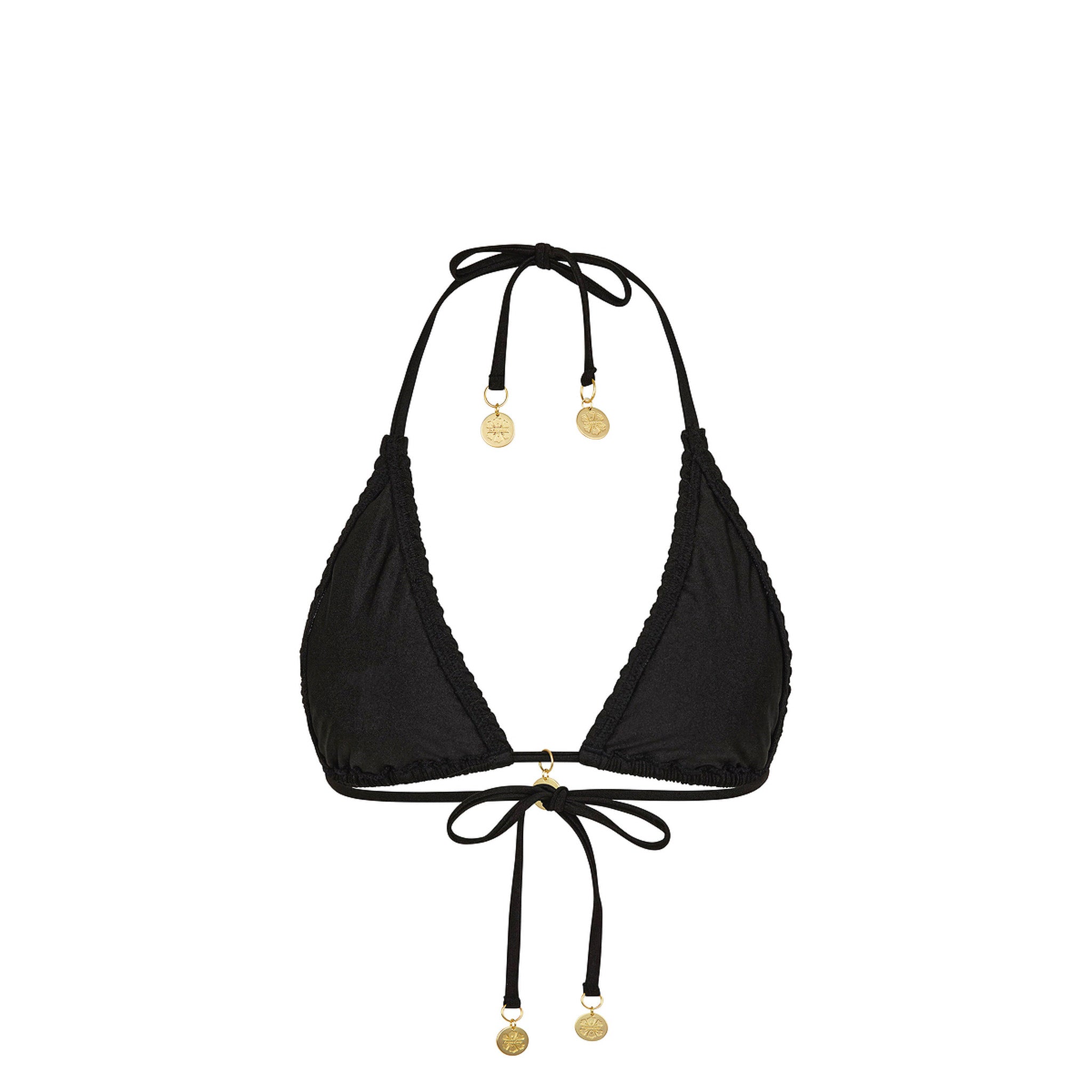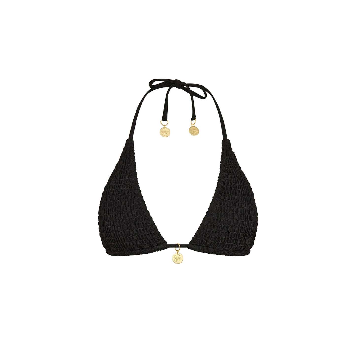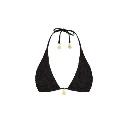 This is a halter triangle bikini top that offers complete adjustability making it a super easy fit! Finished with an ultra luxe shirring texture for added flair.