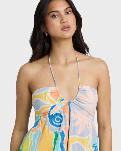 Take summer by storm in our So Groovy floaty cotton-linen romper. The breezy fabric keeps you cool while halter ties and a smocked back bodice create a flattering silhouette. With a short 2.5" inseam and relaxed fit, this dreamy one-piece is perfect for beach days or festival weekends.Part of the Billabong Soulful O'Stoke Collection — sunlit hues, open knits, and effortless layers designed for that wave-chasing, salt-on-skin kind of joy.