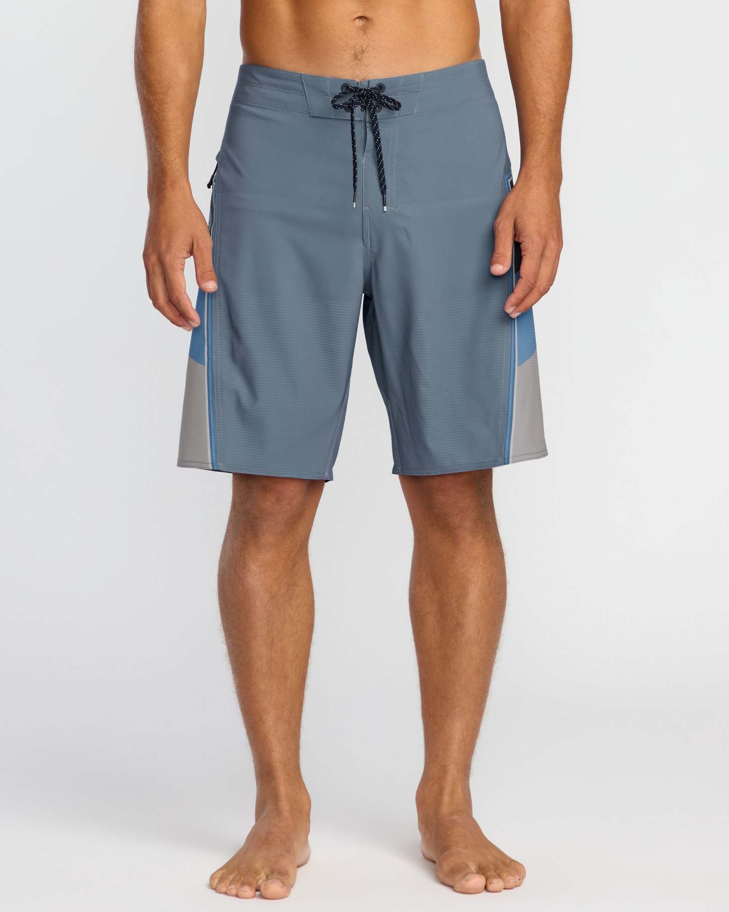 Our Straddie Airlite 20" Boardshorts seamlessly blend three unique fabrics for unmatched stability, flexibility and comfort. Special sublimation prints and logos pop, while a fixed waist and side zip entry pocket keep things locked in for performance. Featured here in the Steel Blue colorway.