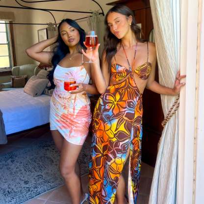 Made for dancing, brunching, and everything in between! The Strappy Cut Out Maxi Dress features a flowy skirt with a side split, a statement neck tie, flattering side cut-outs and a low open back - blending standout style with comfort.