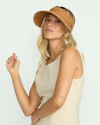 Our 100% straw Sun Spell Visor keeps you cool and shaded with a packable, portable design-perfect for beach days. The elastic back provides a custom fit and stylish branded plaque.