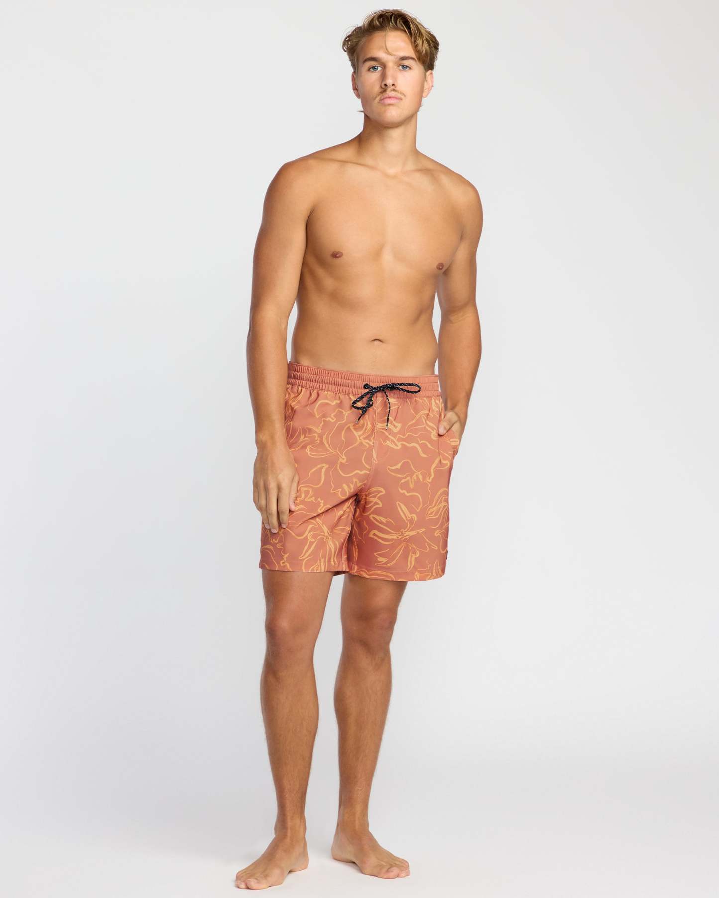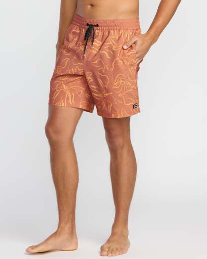Our Billabong Sundays Layback Trunks offer casual style with a relaxed 17" fit in stretchy poly cotton. Back and side pockets provide convenience, while the elastic waist allows easy movement. Finished with a branded woven label. Featured here in the Dusty Rose colorway.
