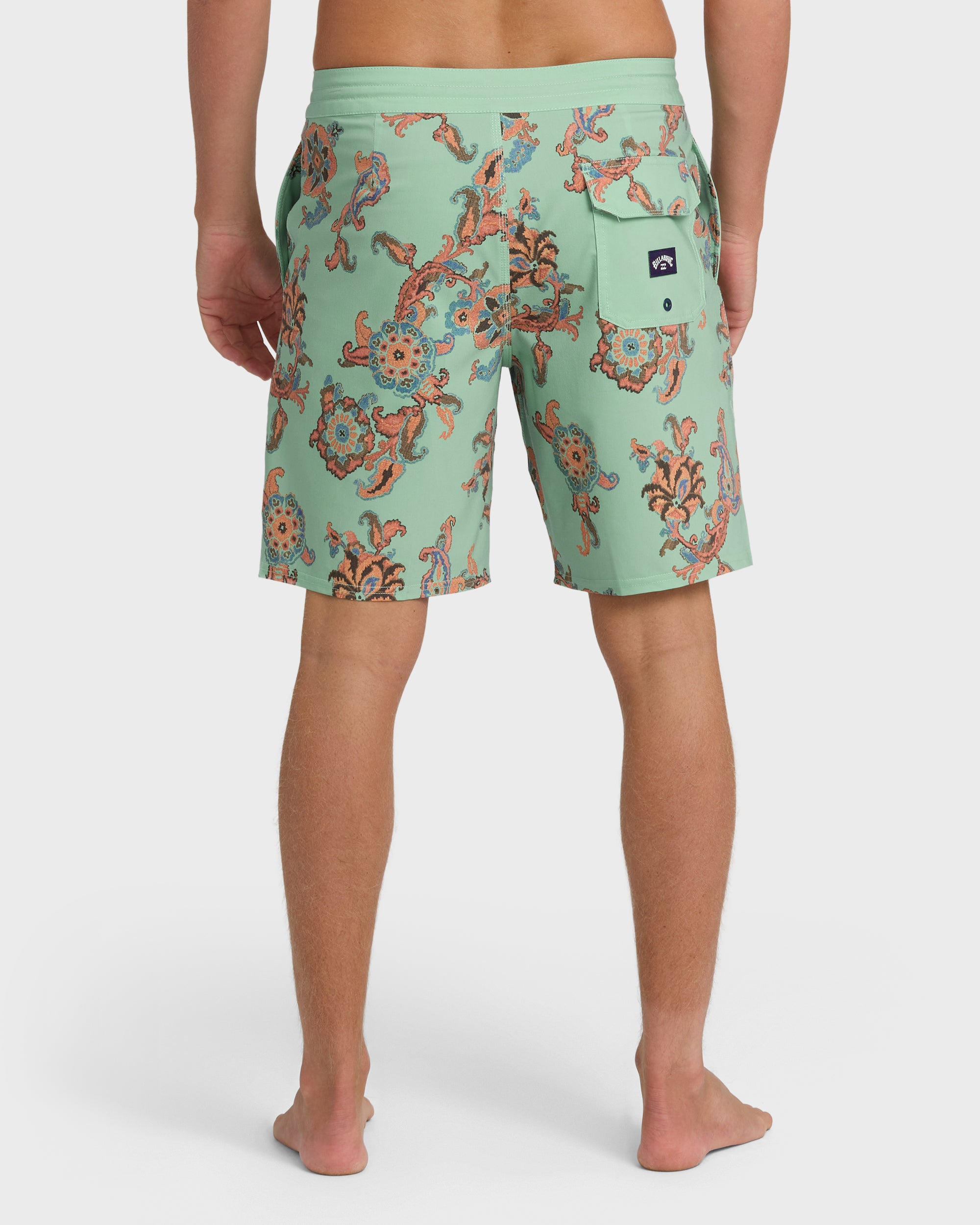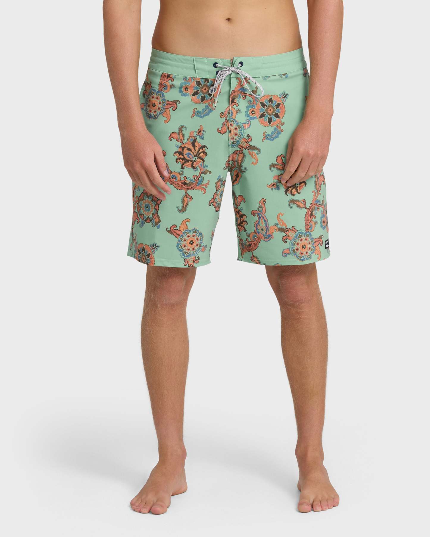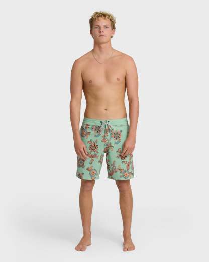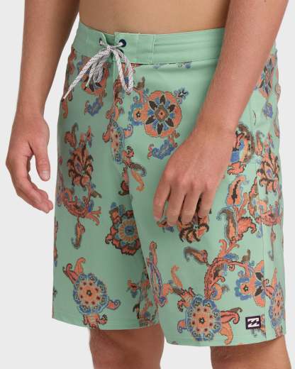 Prints that pack a punch 鈥?our Sundays Lo Tide Boardshorts in Granite Green feature a vibrant sublimation print that's engineered to withstand wear from salt and sand. These men's boardshorts feature side entry pockets and a comfortable fixed waist with 17.5" outseam. The partially recycled polyester blend offers just the right amount of stretch for active days in the water.Celebrating Billabong's surf legacy through a modern lens, the Know The Feeling Collection is a tribute to the designs, people and places that have shaped our story.