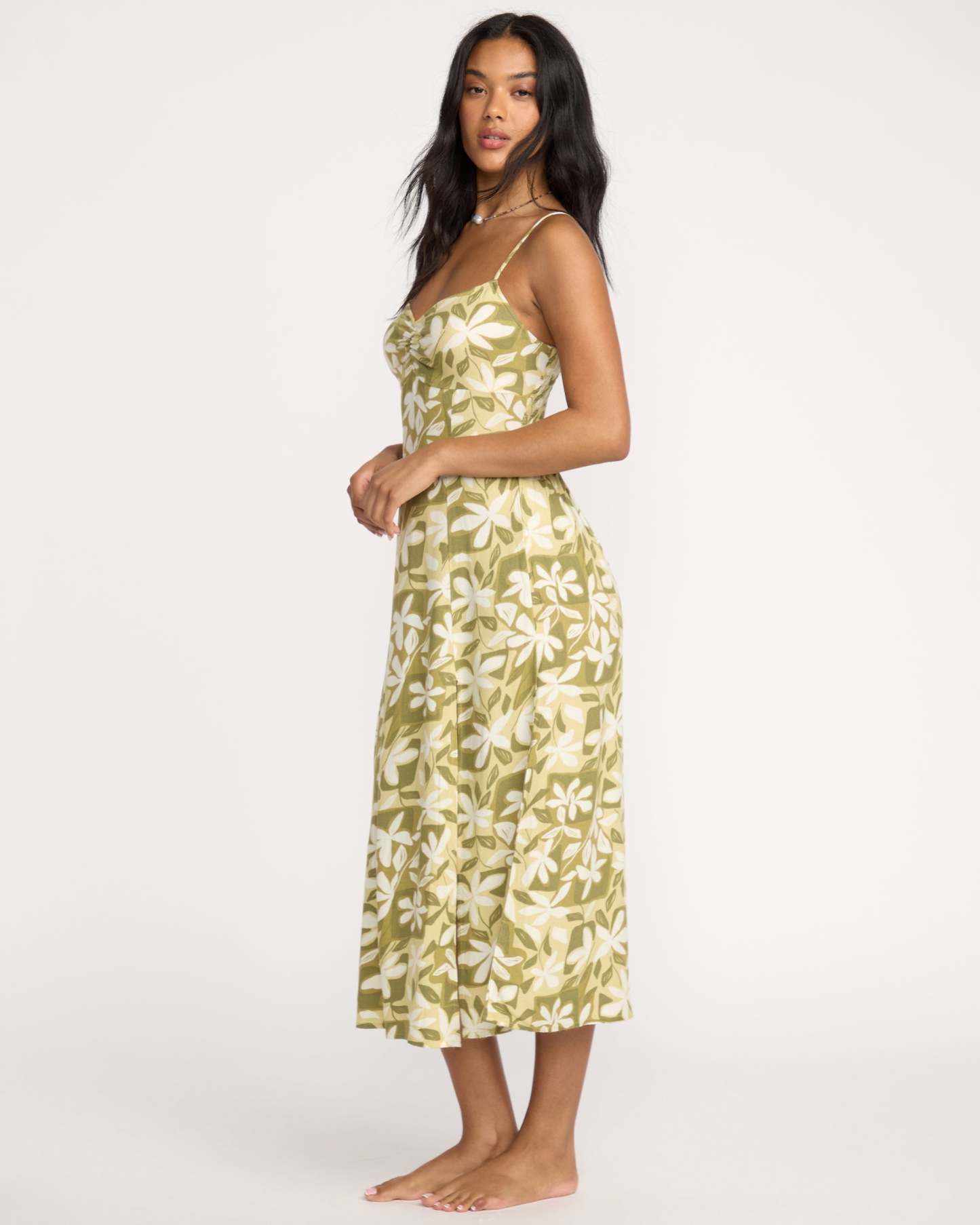 Our body-skimming midi dress brings romance with its sweetheart neckline and graceful front slit. The smocked back bodice ensures a perfect fit, while soft viscose fabric keeps you comfortable all day. Featured here in the Green colorway.