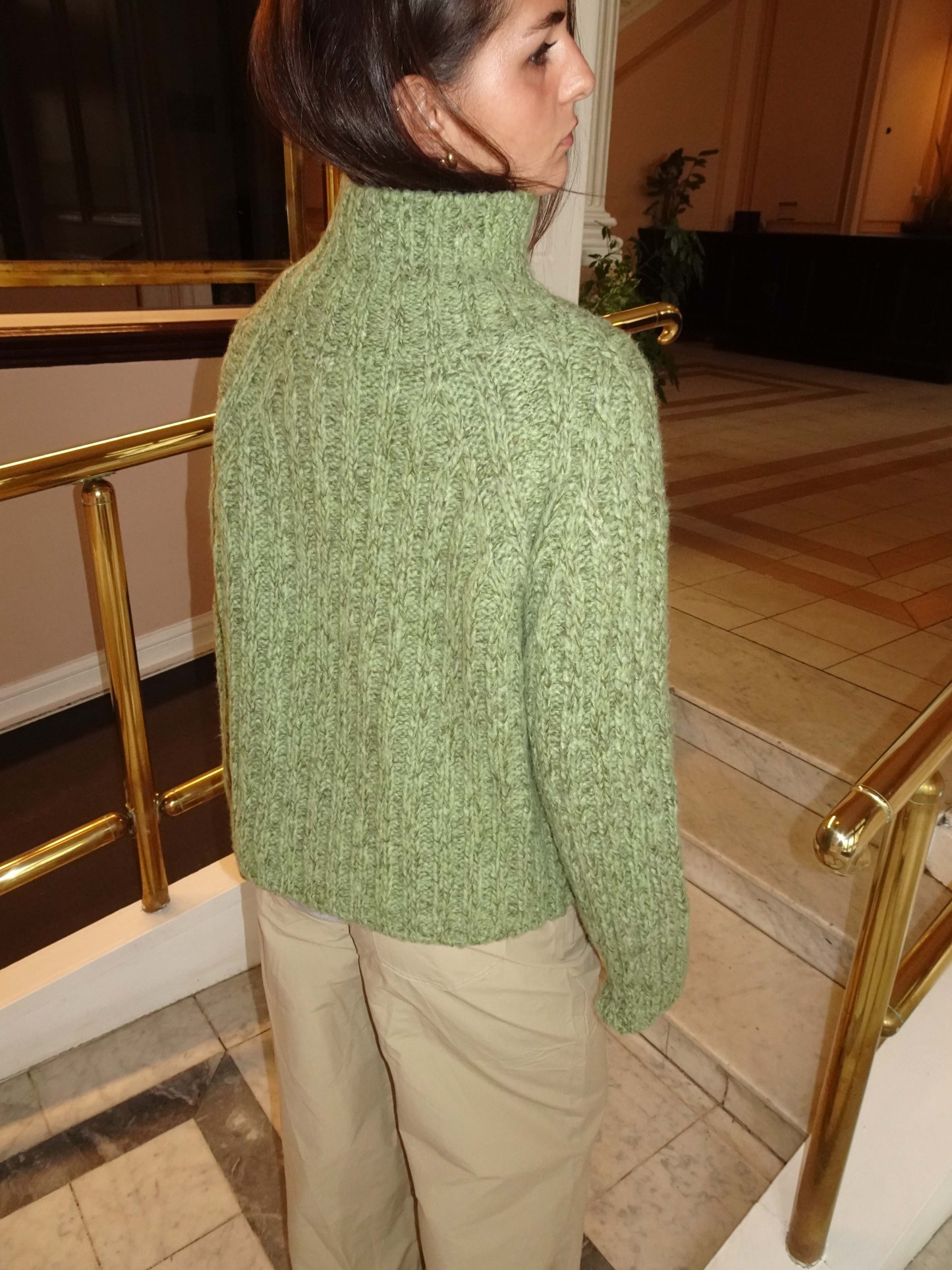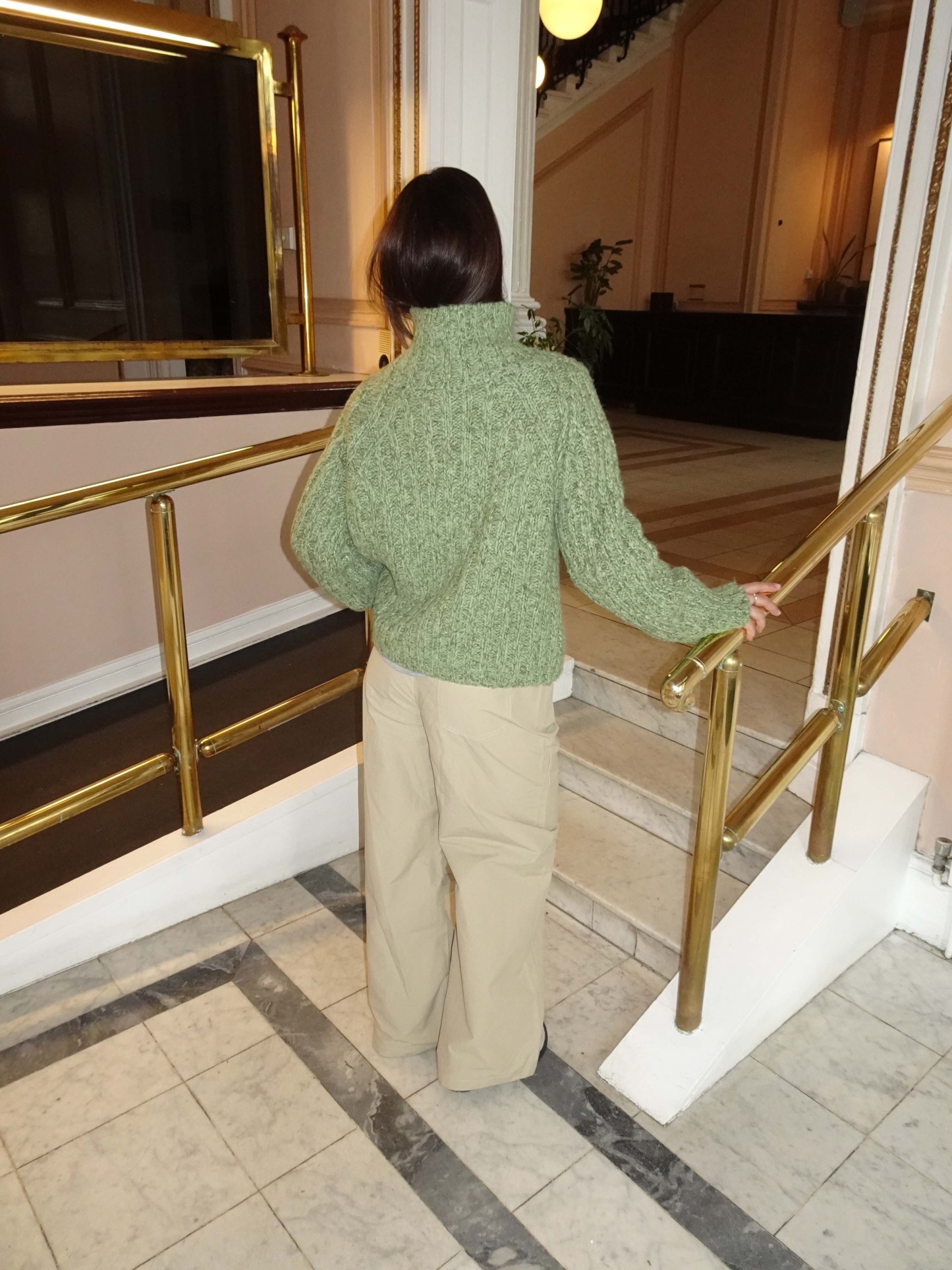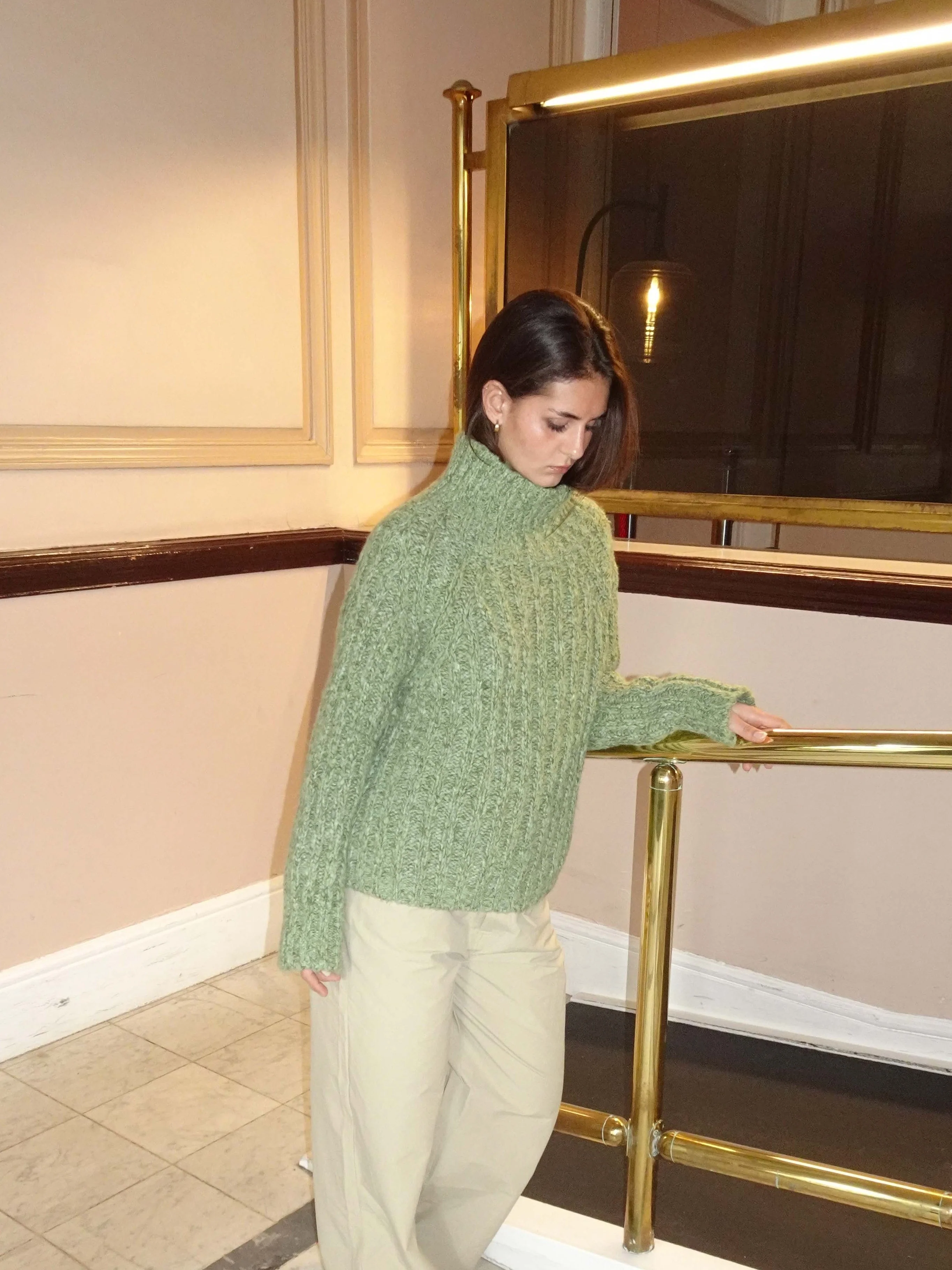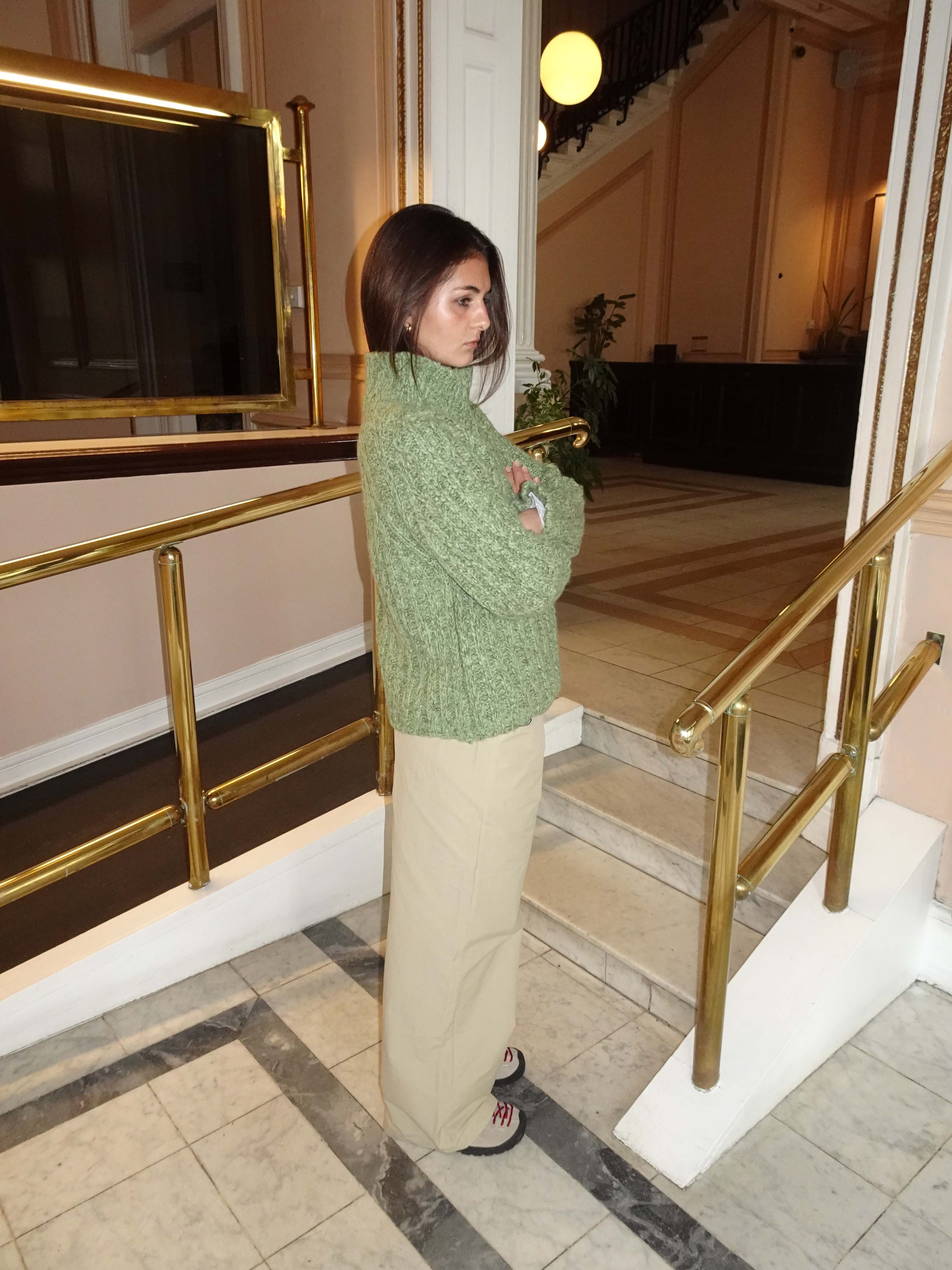 With its high neck, long sleeves, and soft wool blend, Tikka is ideal for cold days — both for everyday wear and cozy weekends. The melange green color makes it easy to style and gives it a classic Scandinavian feel.