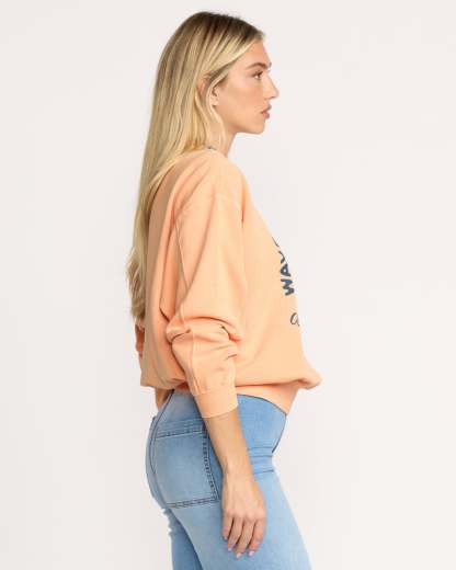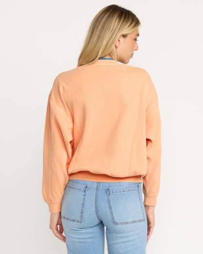 Our cotton-blend crewneck sweatshirt brings cozy vibes with its oversized fit and brushed fleece interior. The pigment-dyed finish and screen-printed design add a laid-back touch to this everyday essential. Featured here in the Orange colorway.