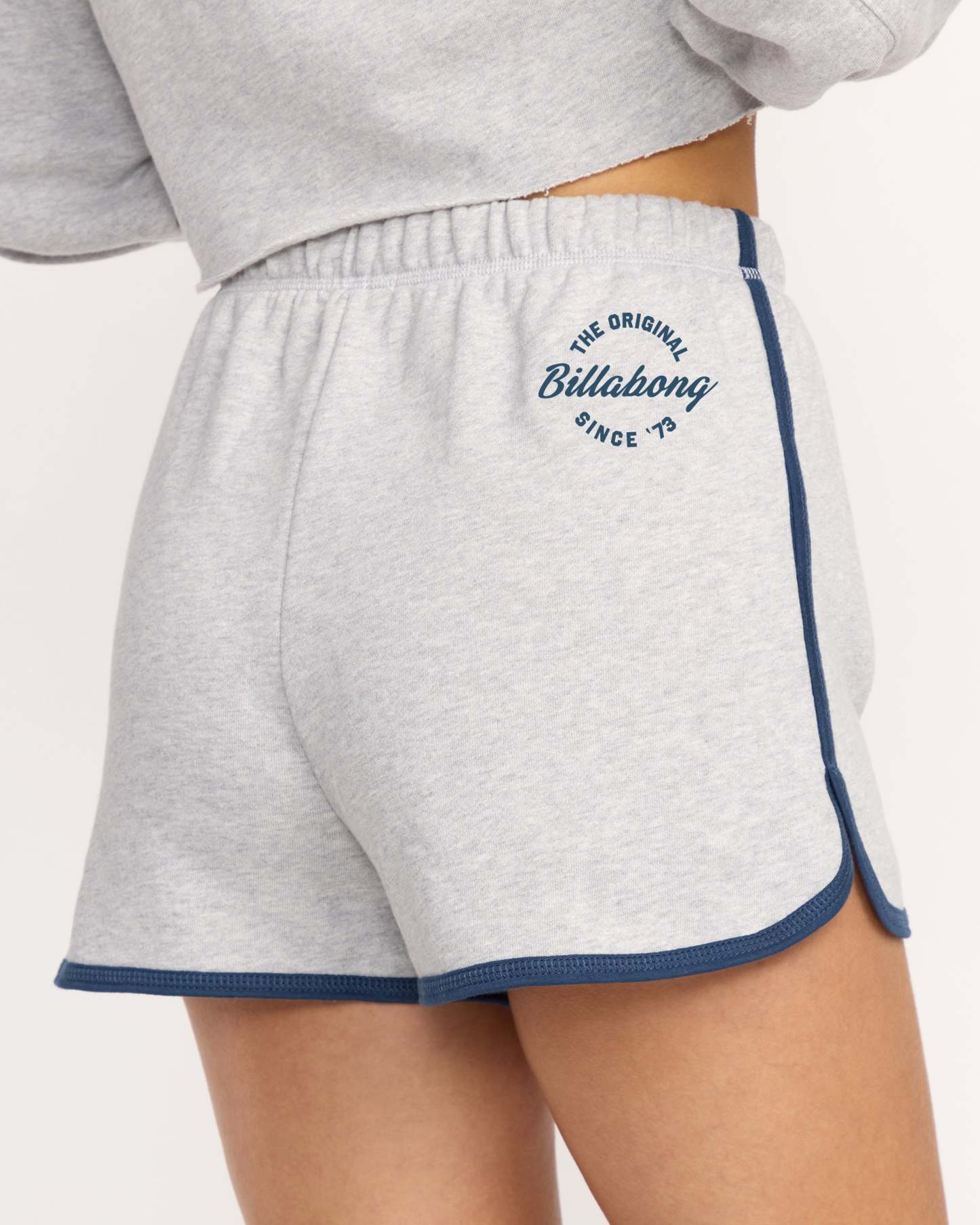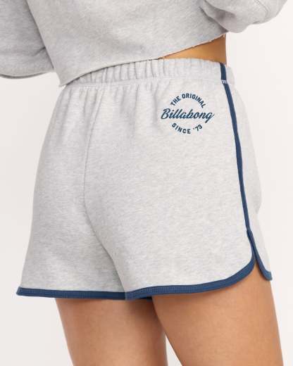 Our soft cotton-blend fleece shorts bring retro athletic style to casual comfort. The classic dolphin cut pairs with an elastic waistband, while contrast binding and hip embroidery add signature style details. Featured here in the Gray colorway.