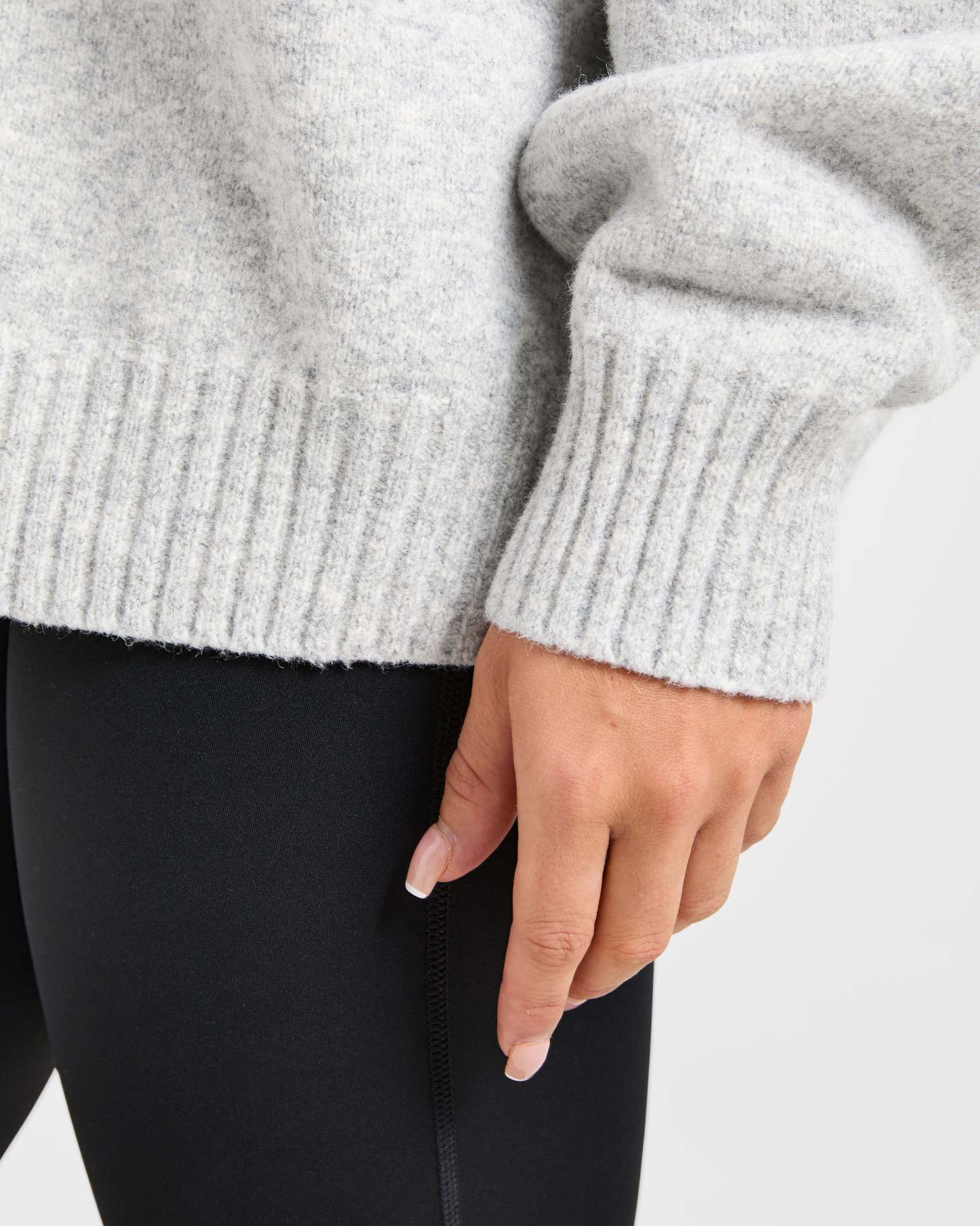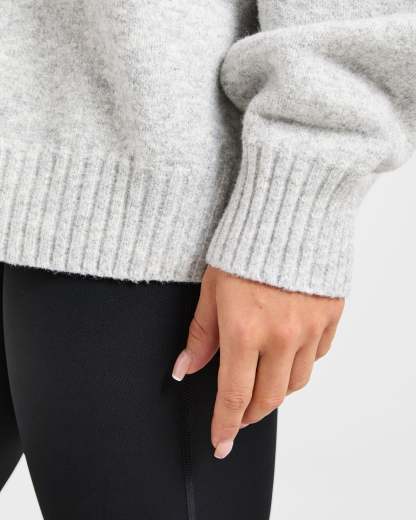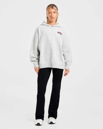 Varsity Minimal Logo Oversized Knitted Hoodie - Grey Marl/Burgundy