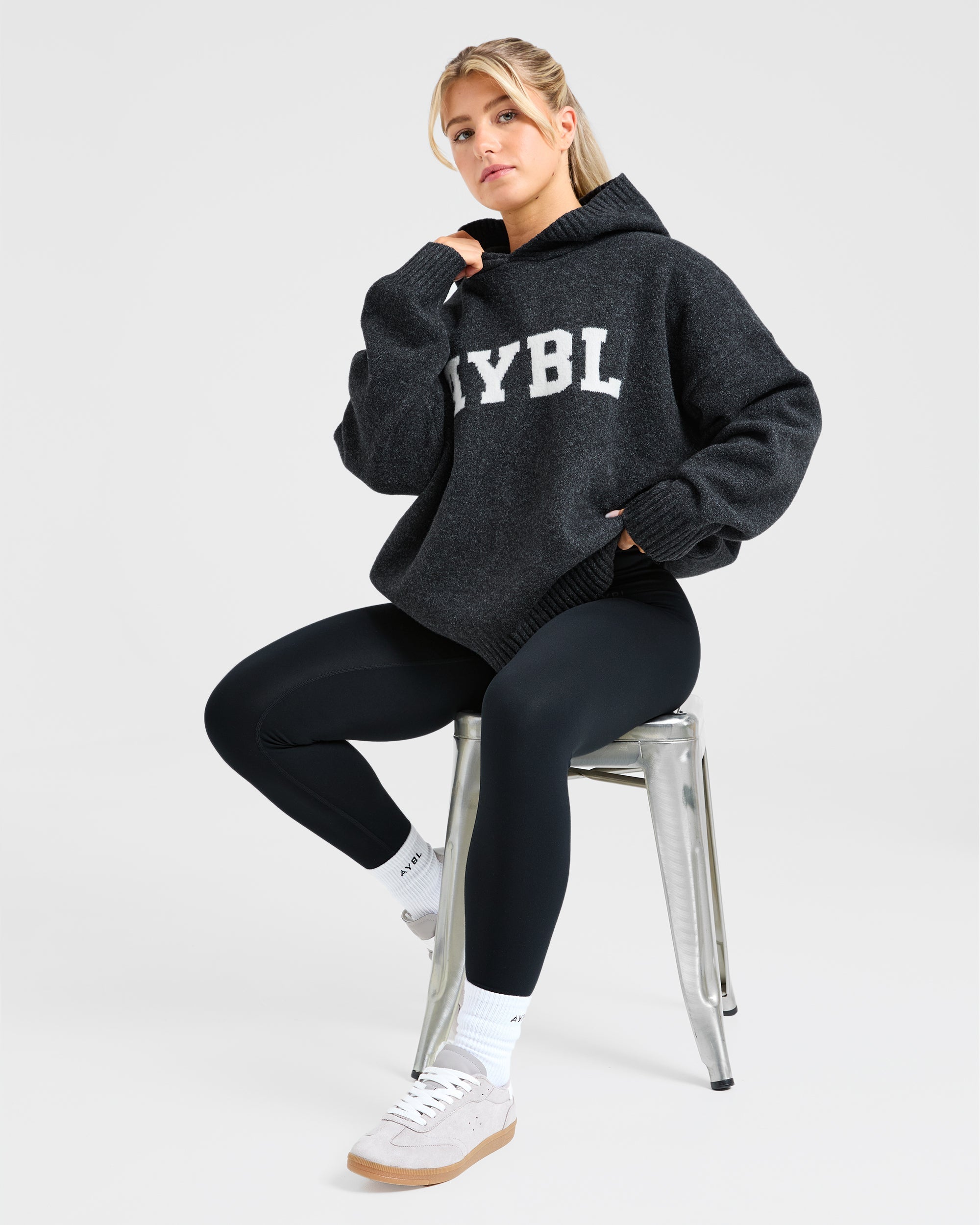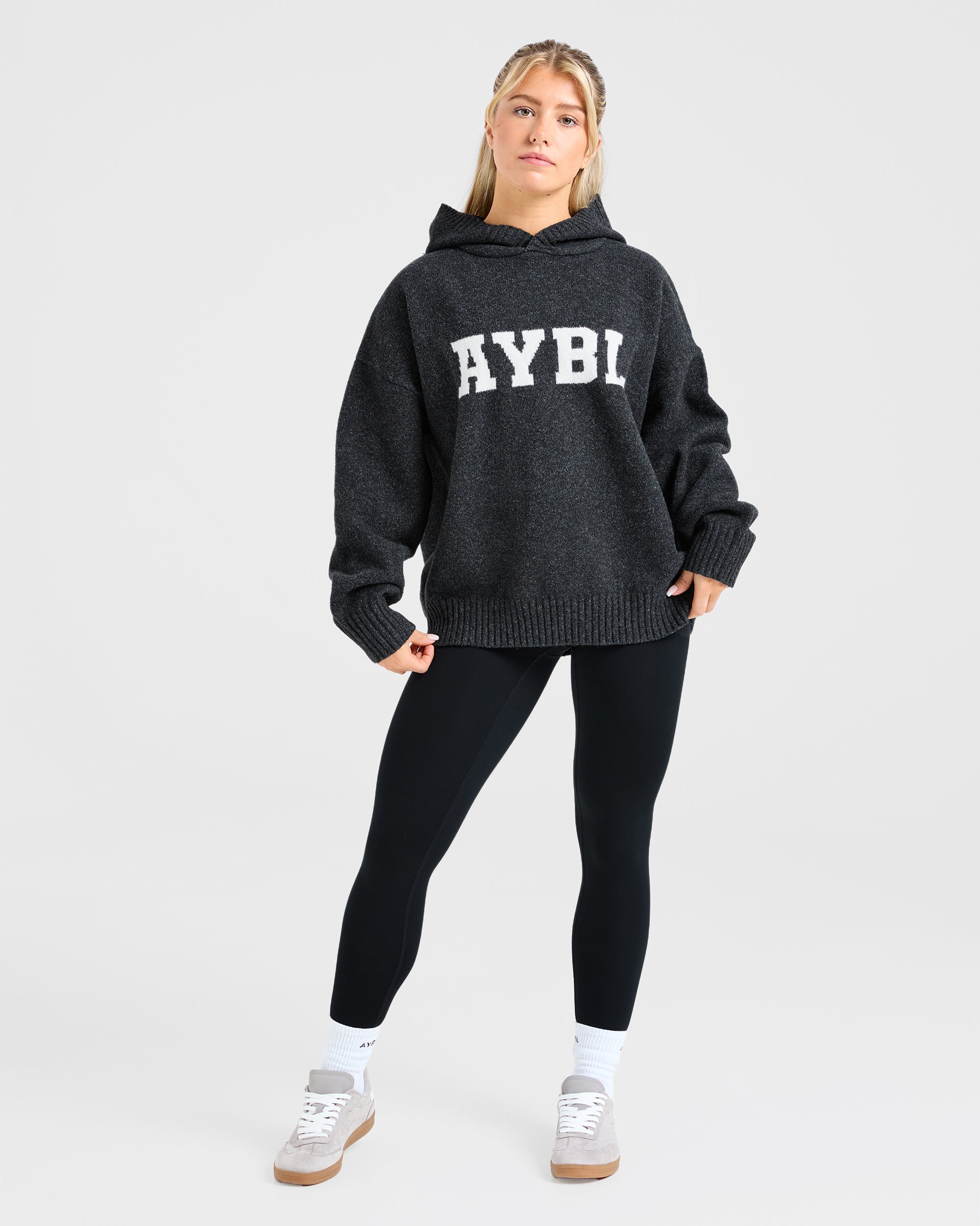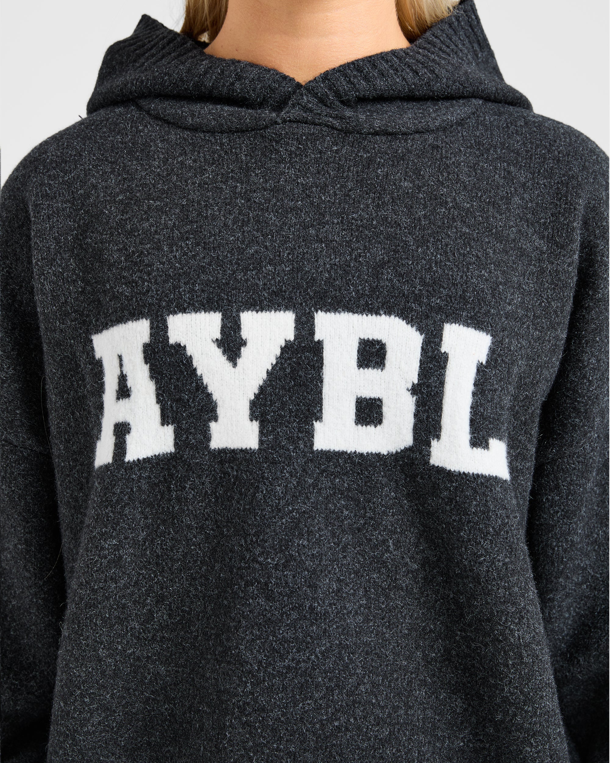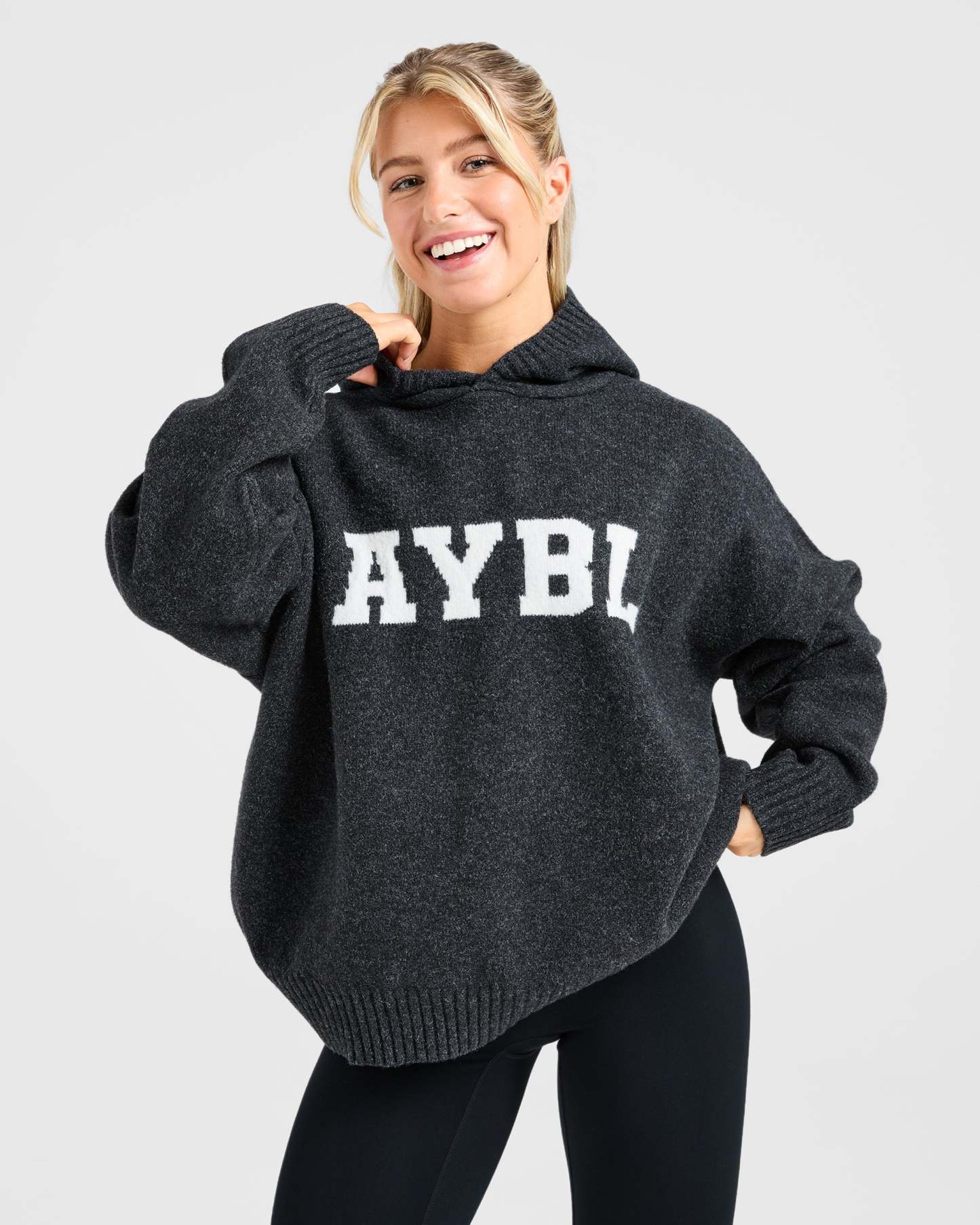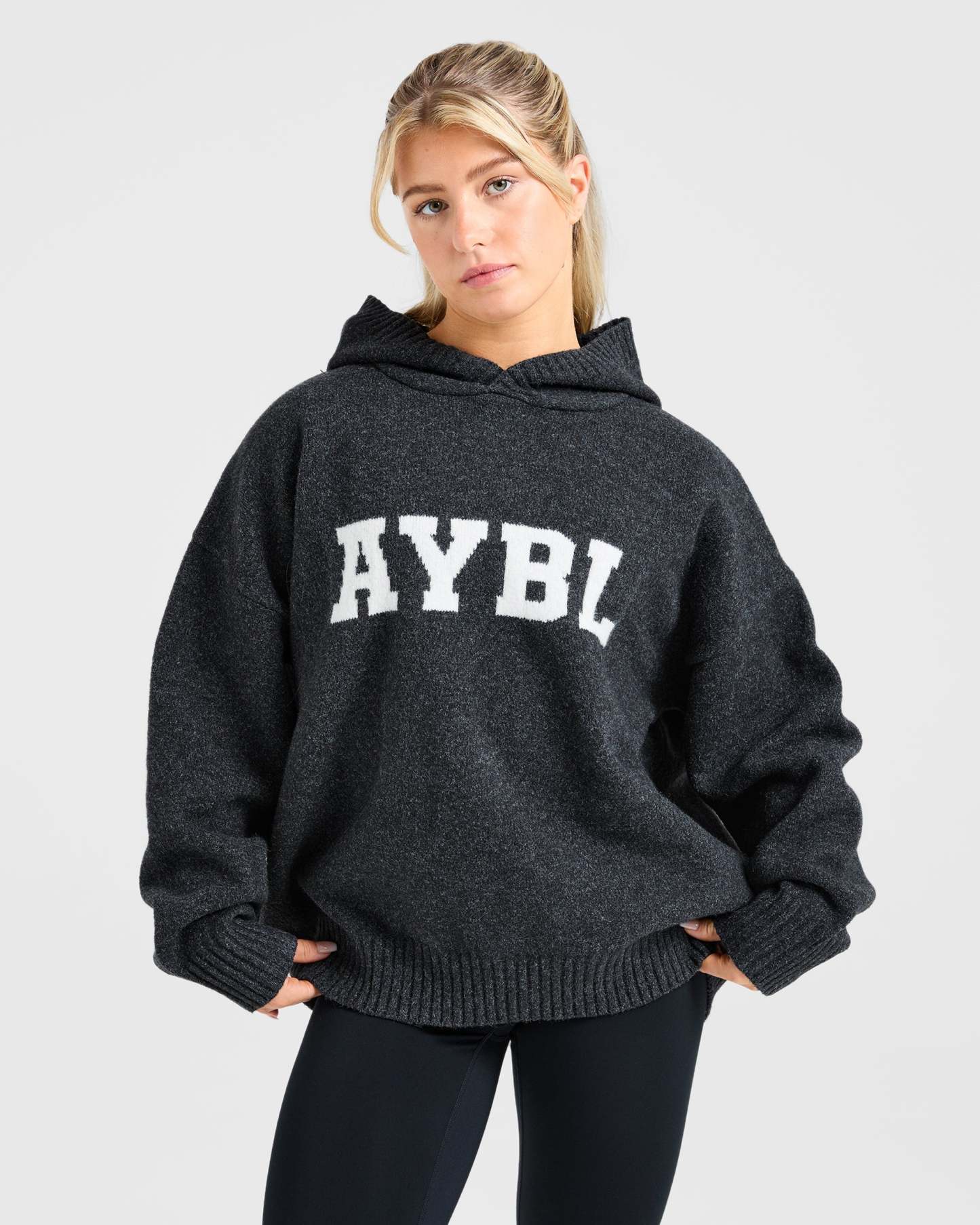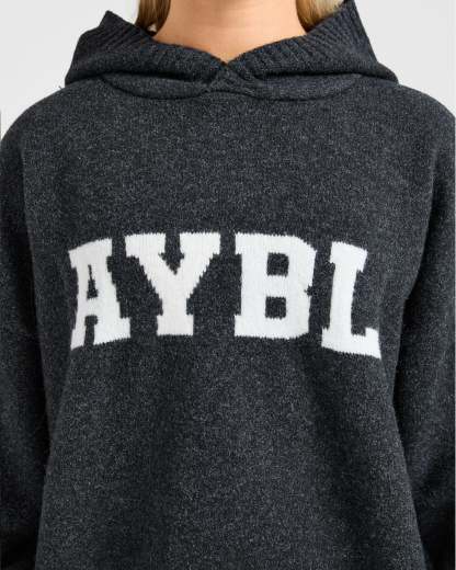 Introducing our Varsity Oversized Knitted Hoodie. Made with super soft, thick knit fabric, this hoodie offers ultimate comfort. The oversized fit and dropped shoulder detail ensures a relaxed feel. Detailed with a knitted AYBL varsity logo on the front chest, and a clean ribbed finish on the cuffs and hem. Stay stylish and comfortable all day long.