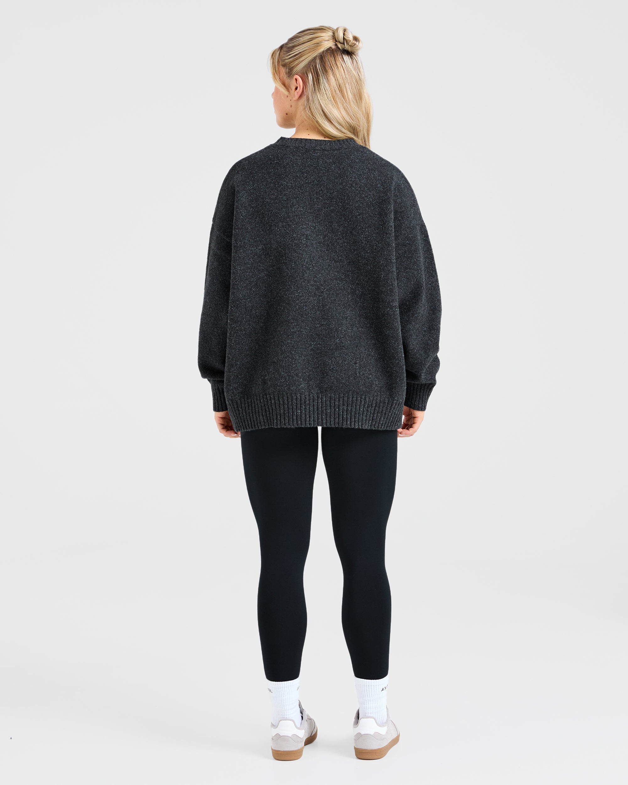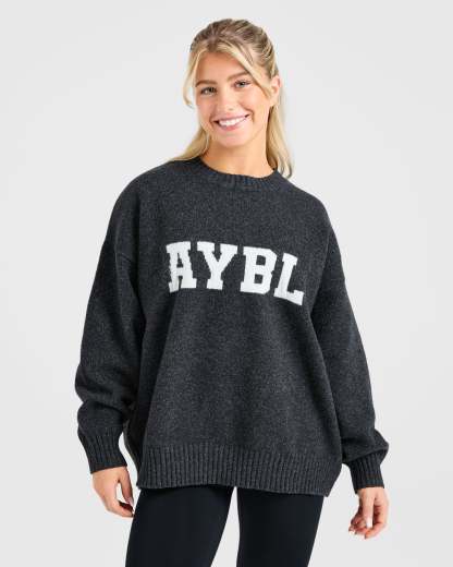 Varsity Oversized Knitted Sweater - Charcoal