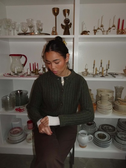 The Vincent cardigan is an elegant and versatile knit with a feminine expression. Made from a soft and fluffy quality that feels light and comfortable against the skin. The fine vertical rib details and round front buttons give the cardigan a classic and timeless look. With its lightweight fit, Vincent is perfect both as a layering piece over a shirt or worn closed as a top on its own. The deep green shade makes it easy to style with jeans, skirts, and dresses.