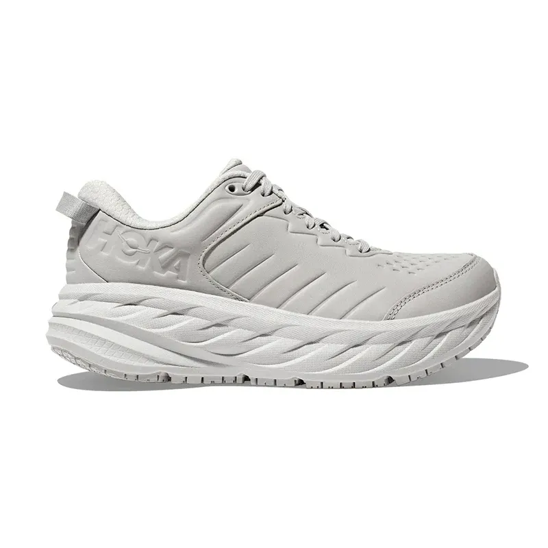 The Bondi SR takes the most cushioned shoe in the HOKA road-shoe lineup and reworks the silhouette to handle the demands of daily life. Updated with water-resistant leather, a slip-resistant outsole and EVA midsole to ensure all-day cushion, this workplace warrior features an ultra-grippy, full ground contact rubber that stands up to the demands of the service industry and medical field alike.