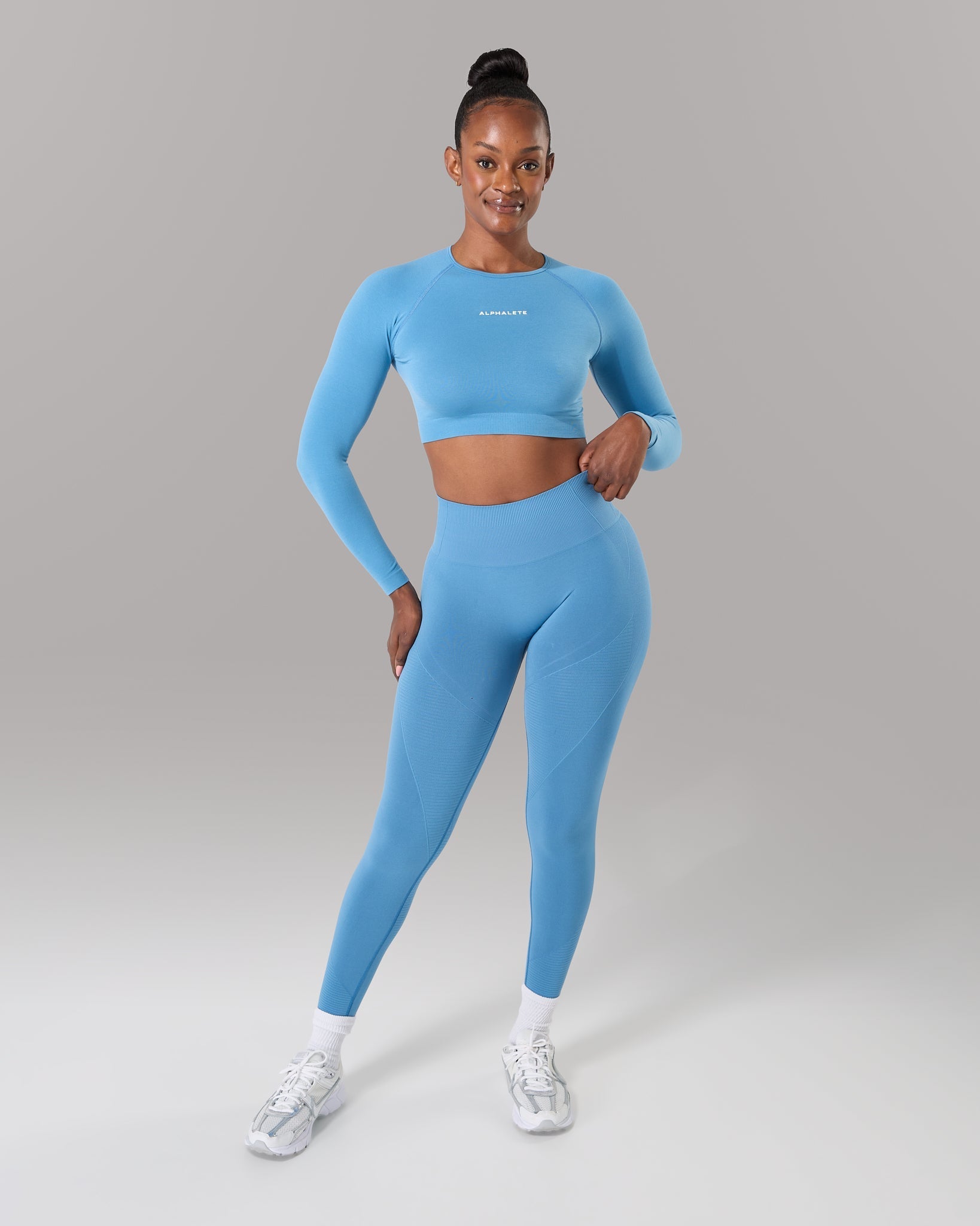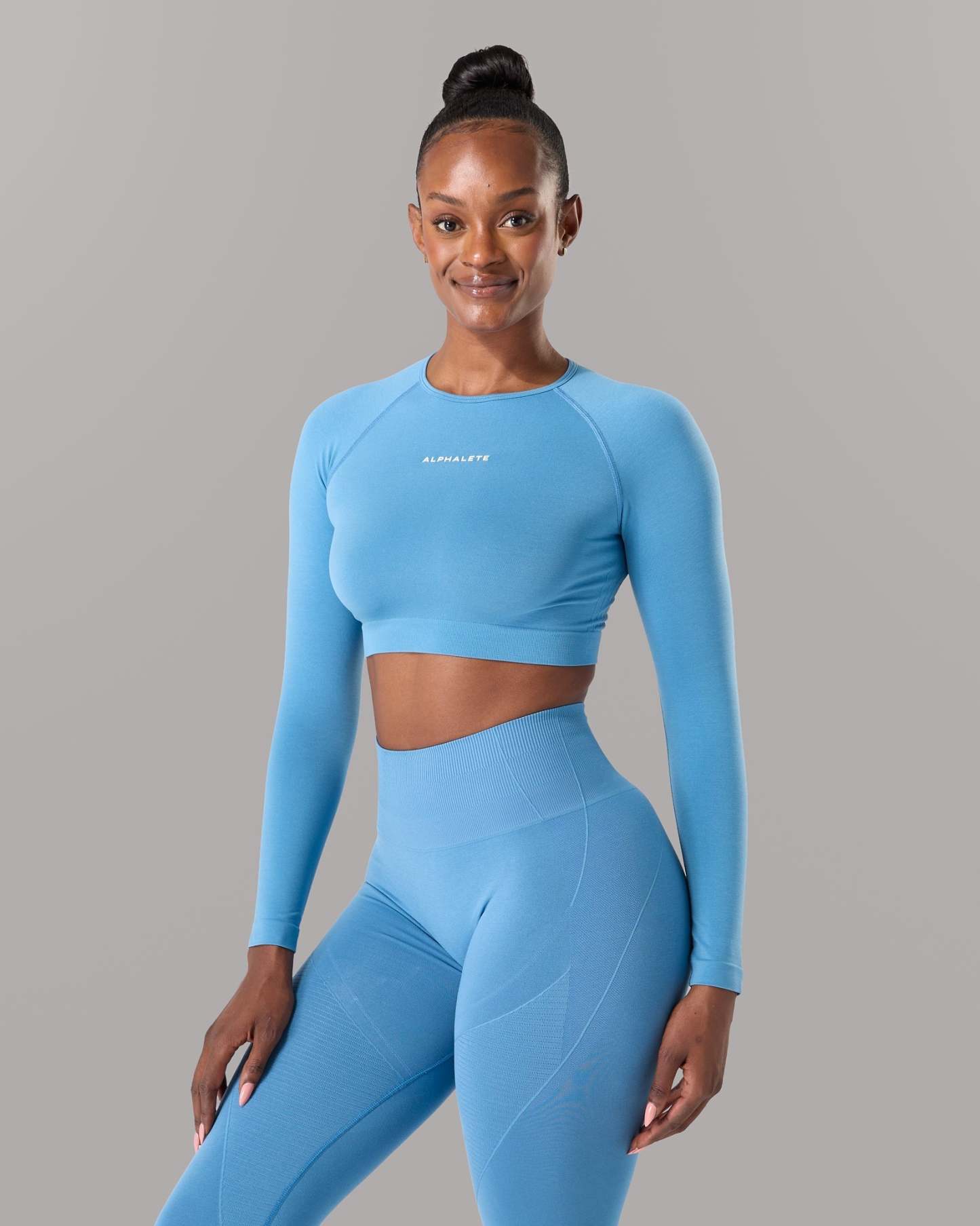 The beloved Amplify Long Sleeve is back. A light weight seamless top that is perfect for layering over your favorite Alphalete bra and with any of our seamless bottoms.