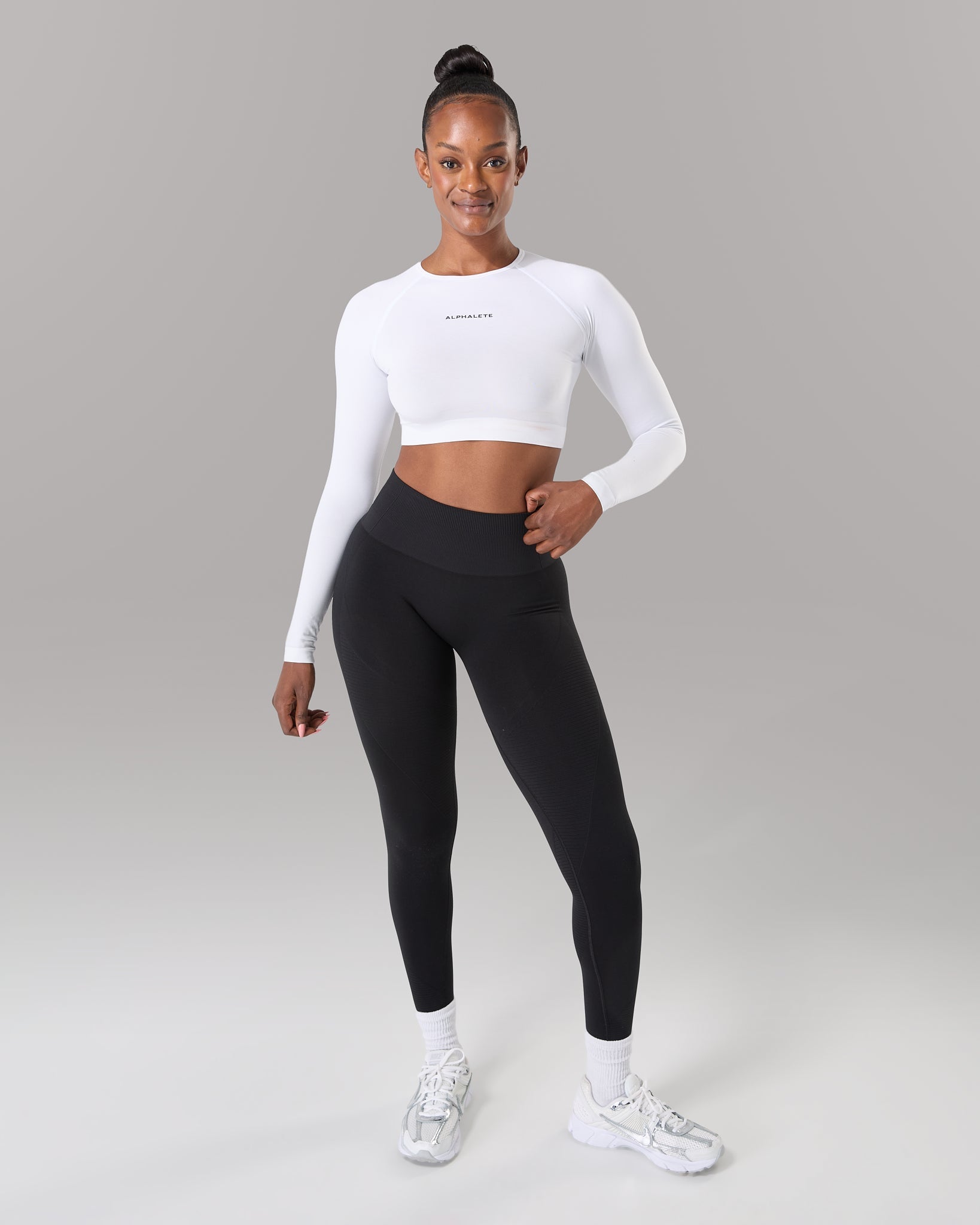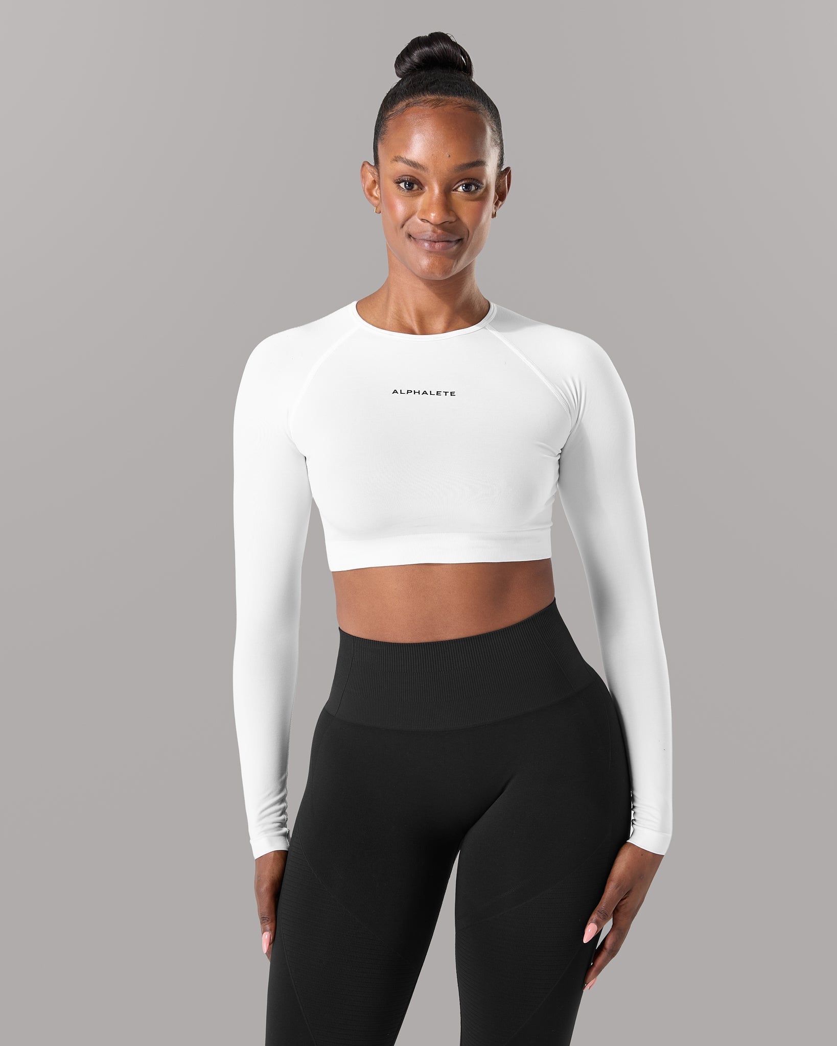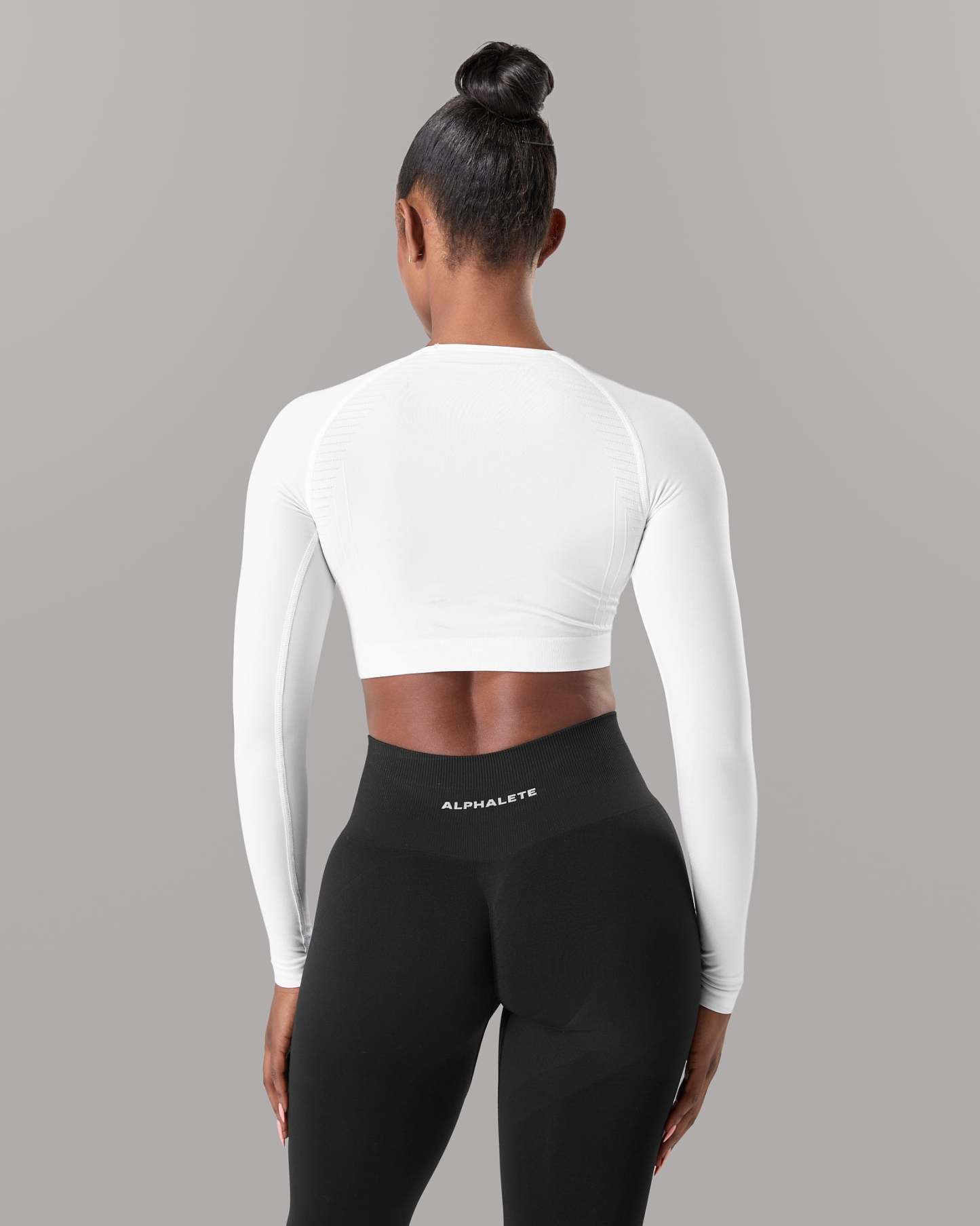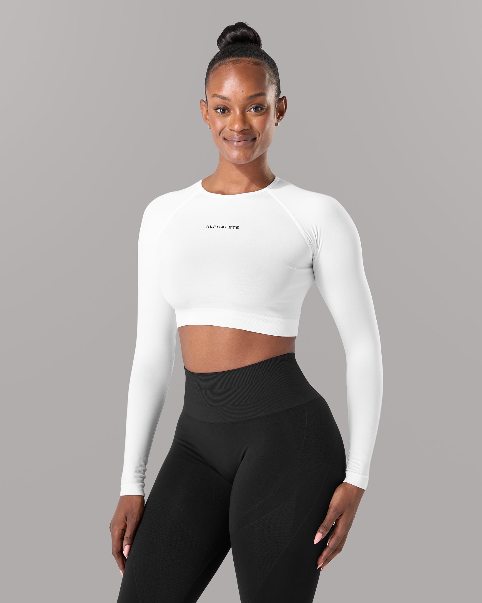 The beloved Amplify Long Sleeve is back. A light weight seamless top that is perfect for layering over your favorite Alphalete bra and with any of our seamless bottoms.