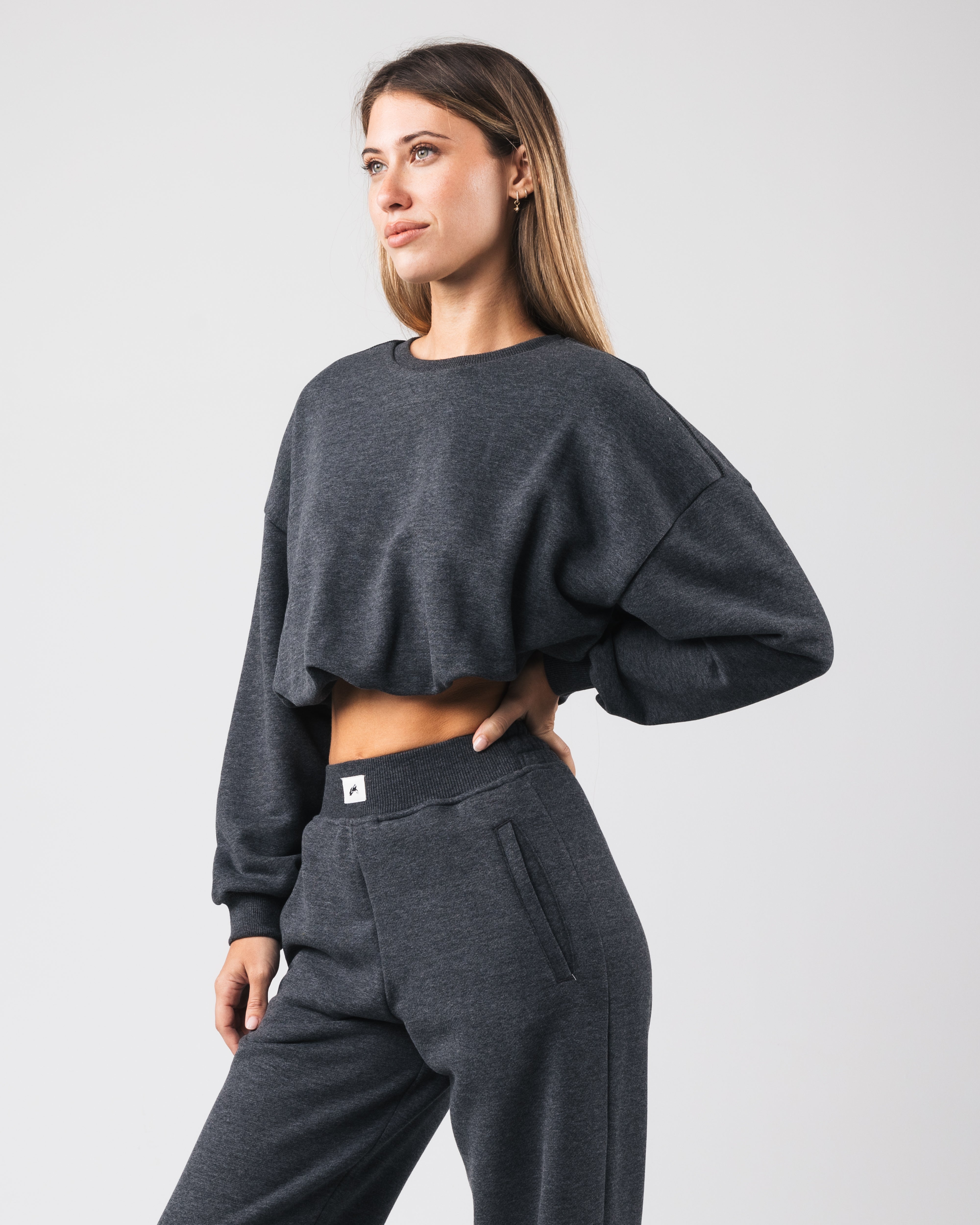 This fleece crew neck is the perfect layering piece to wear to and from the gym during the colder months. Layer it over your favorite Alphalete bra or tee as you warm-up to keep your muscles loose and limber before your workout. The “bubble” hem of this sweatshirt gives you the perfect tucked look without the hassle. This fleece is single dyed and brushed, giving it a nostalgic, cozy appearance and the feel of your favorite vintage sweatshirt.