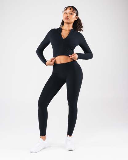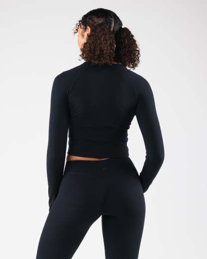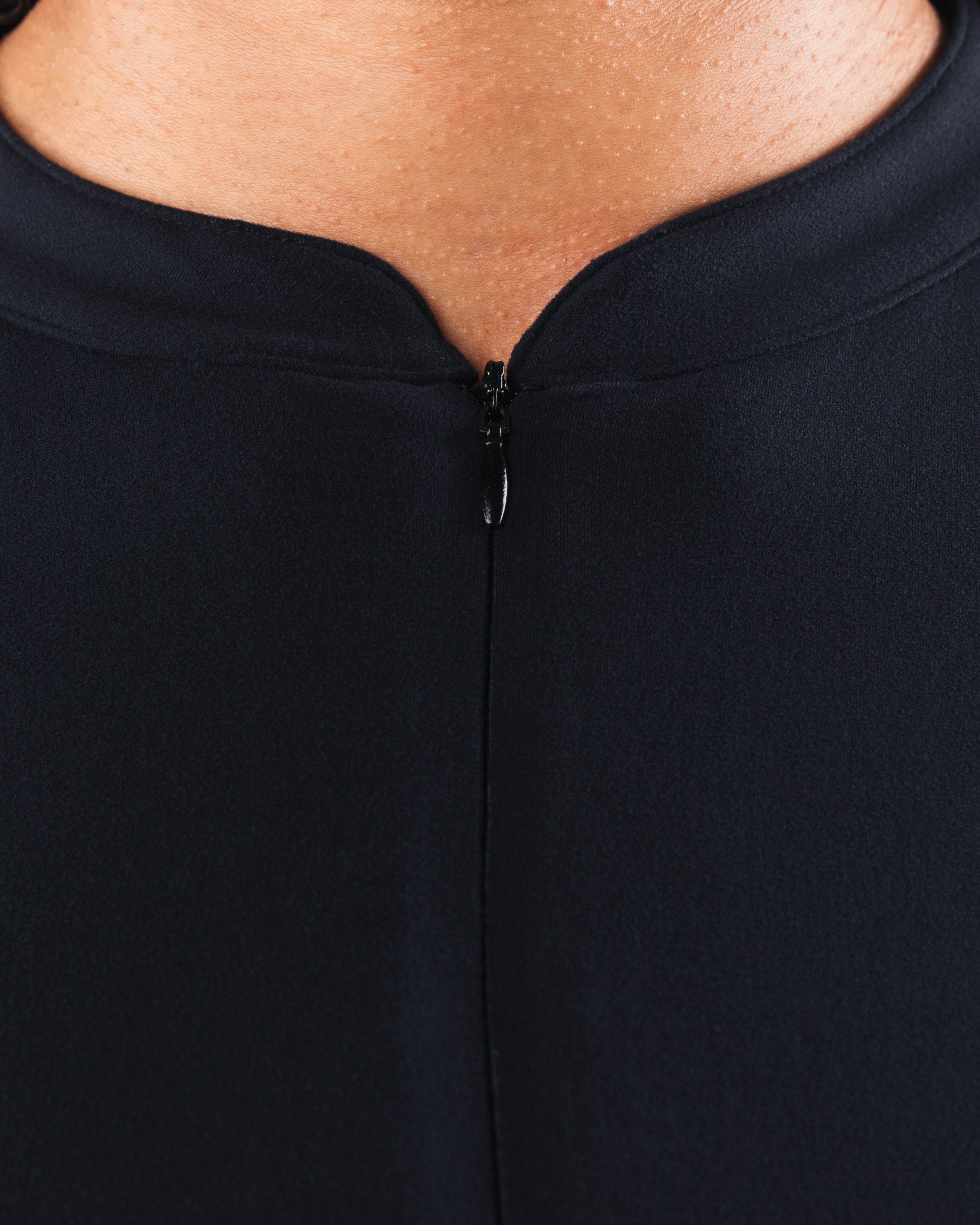 Tenacity is our newest high performance fabric. Extreme high stretch meets a buttery soft hand-feel to make this fabric the perfect ten. These bras allow for unrestricted movement and breathability making them perfect for high intensity training. With a built in bra, and plunging zipper, this bra offers extreme versatility in how it is styled. The cap sleeves and cropped silhouette offer a flattering cut to show off all your hard work.