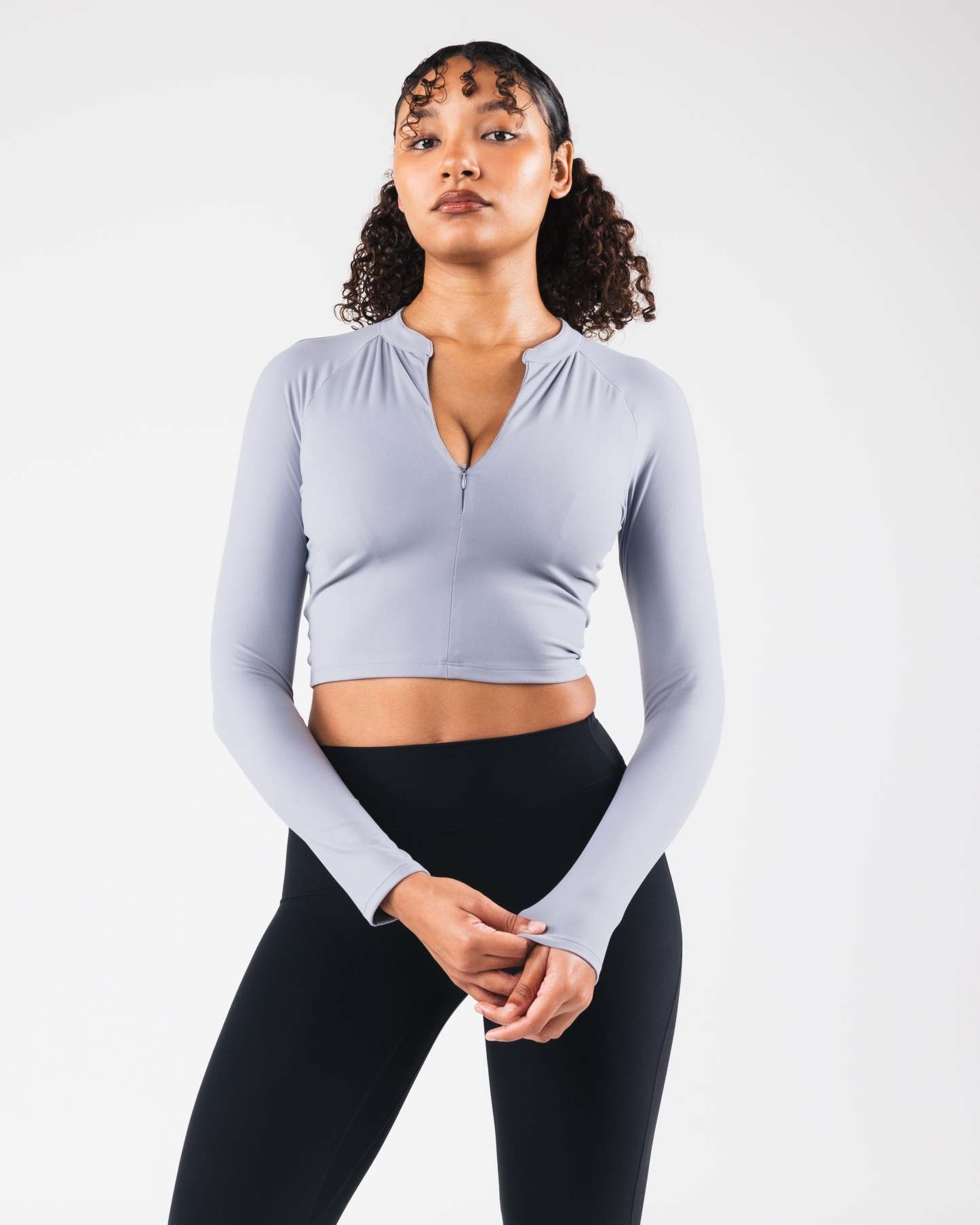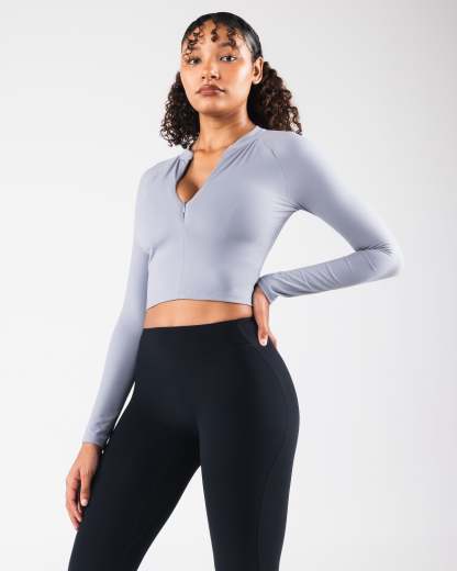 Tenacity is our newest high performance fabric. Extreme high stretch meets a buttery soft hand-feel to make this fabric the perfect ten. These bras allow for unrestricted movement and breathability making them perfect for high intensity training. With a built in bra, and plunging zipper, this bra offers extreme versatility in how it is styled. The cap sleeves and cropped silhouette offer a flattering cut to show off all your hard work.