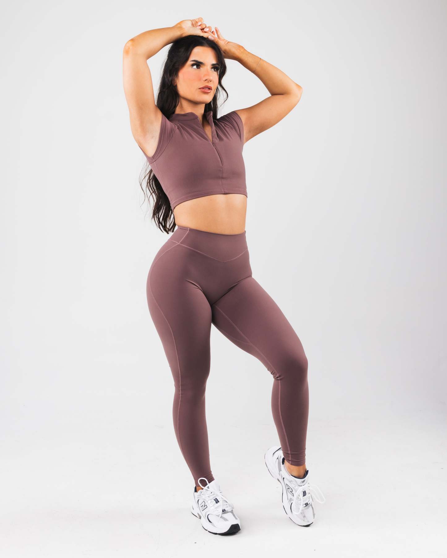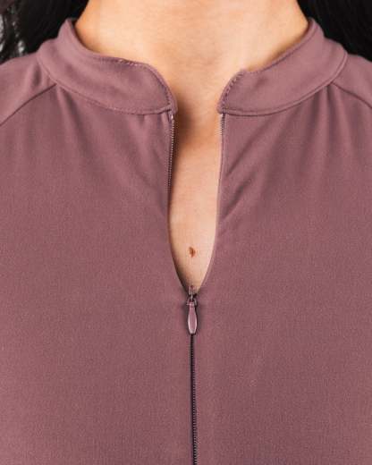 Tenacity is our newest high performance fabric. Extreme high stretch meets a buttery soft hand-feel to make this fabric the perfect ten. These bras allow for unrestricted movement and breathability making them perfect for high intensity training. With a built in bra, and plunging zipper, this bra offers extreme versatility in how it is styled. The cap sleeves and cropped silhouette offer a flattering cut to show off all your hard work.